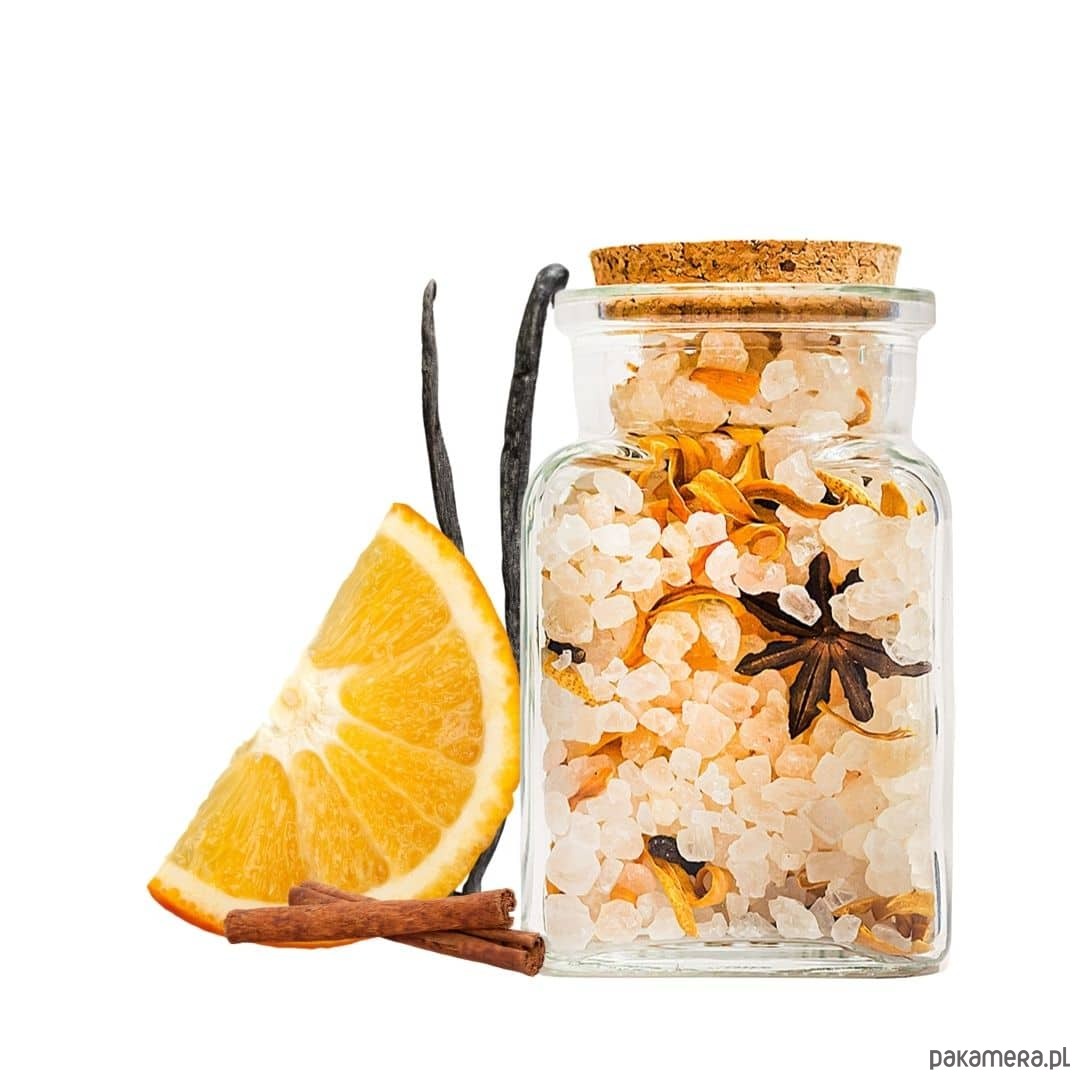 sól kłodawska, suszone kwiaty pomarańczy, goździki, olejek eteryczny słodka pomarańcza, kompozycja zapachowa wanilia, olejek eteryczny cynamon
