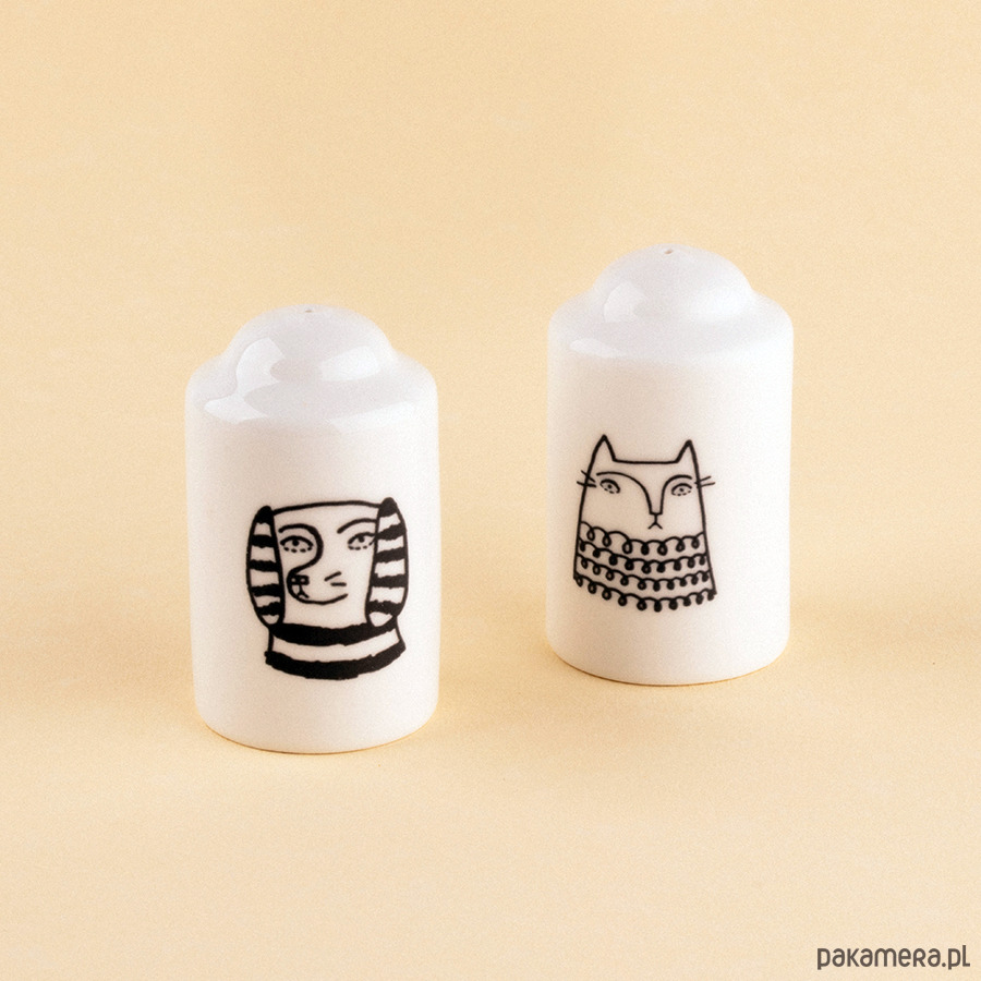 Zestaw: solniczka i pieprzniczka: pies i kot.