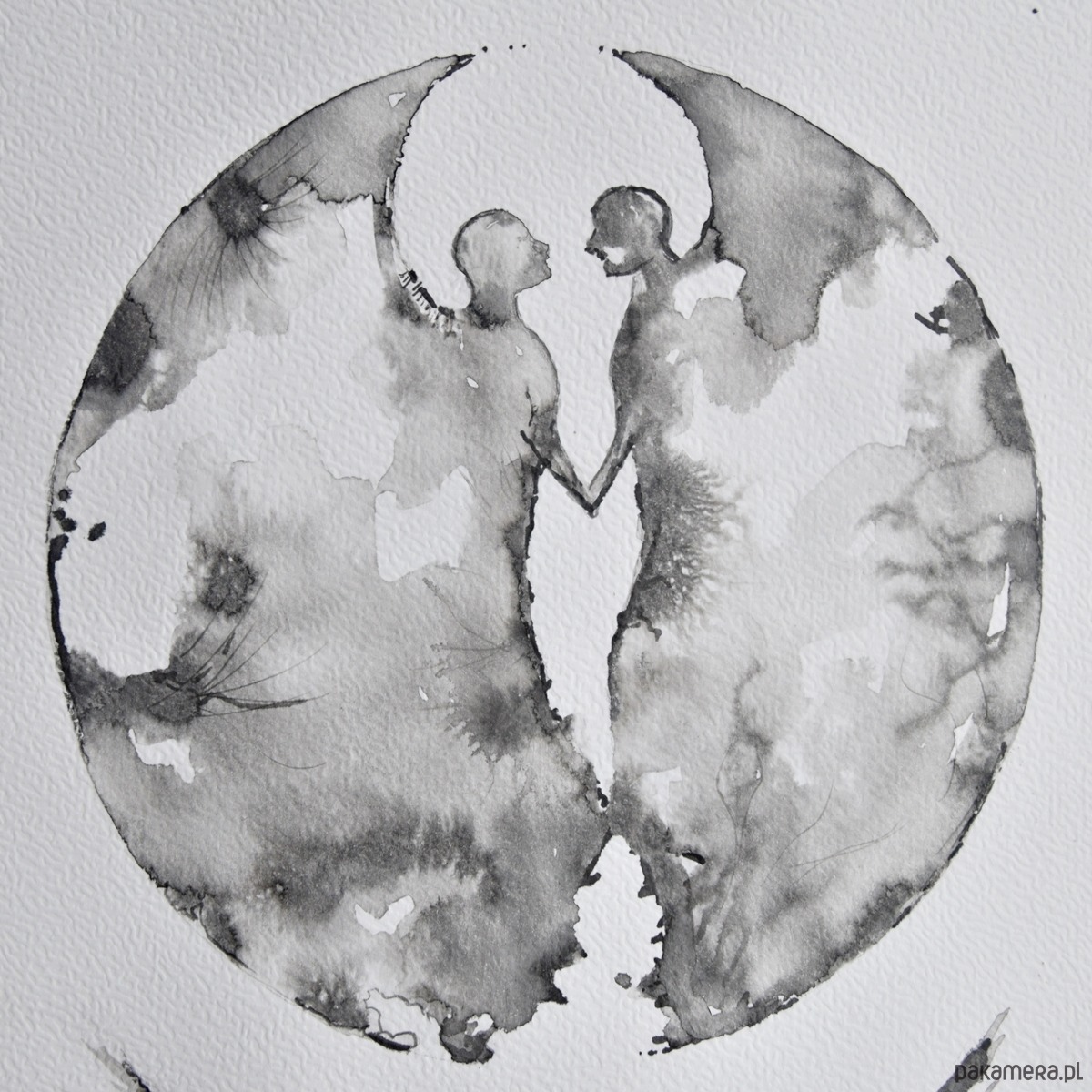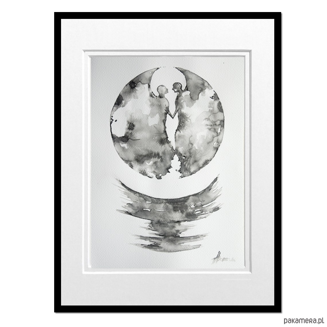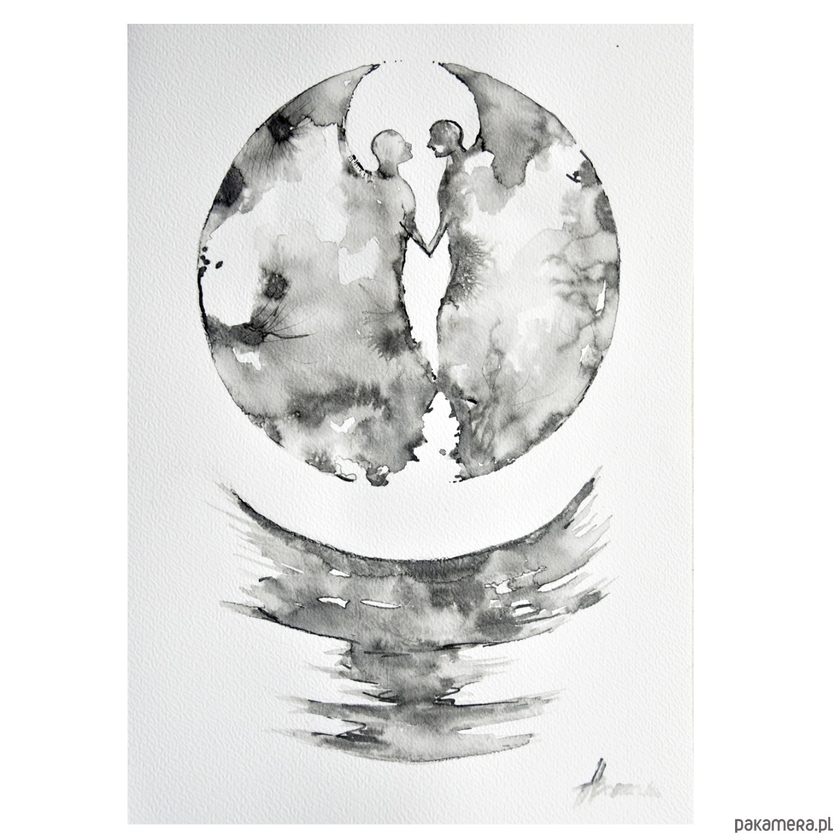 Czarno-biała grafika - oryginalny obraz malowany tuszem na papierze akwarelowym o gramaturze 300 g, w formacie A4 (ok. 20/30 cm).