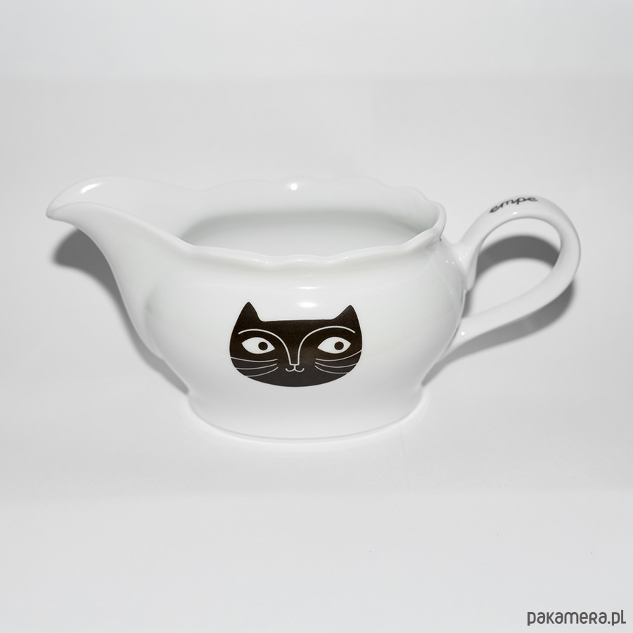 Dzbanek / sosjerka z kotem i kwiatkiem. Stworzona w duchu zero waste i upcykling – pochodzi z drugiej ręki. Kiedyś przez kogoś używana, później zapomniana, teraz ma szansę na nowy dom! Kupując przedmioty od Empe dbasz o naszą planetę ♥