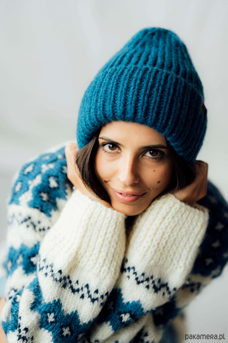 Duża czapka wełniana z miękkiej i puchatej przędzy, 100% naturalnej mieszanki wełny merino i bawełny czesanej. Nie gryzie! Nawet najbardziej wrażliwe osoby będą czuły się w niej komfortowo. Jest miękka i puchata i niezwykle twarzowa. Dobrze dopasowuje się do kształtu głowy, otula uszy. Poczujesz się w niej jakbyś chodziła w chmurce.