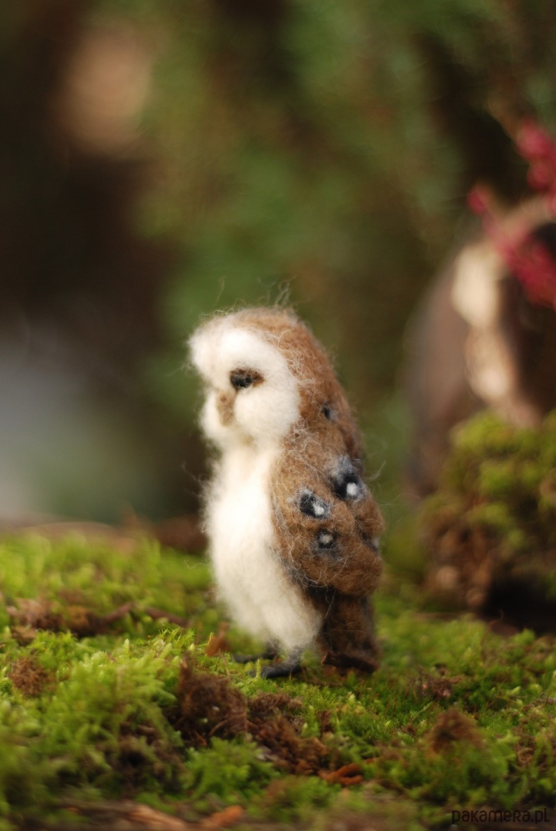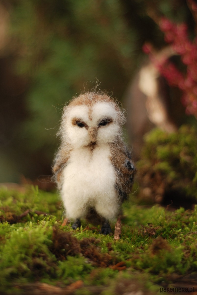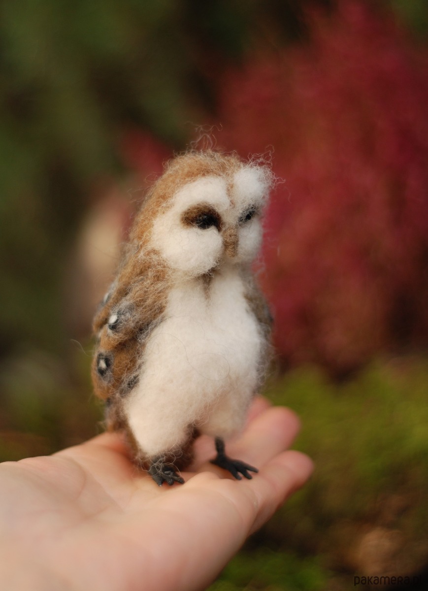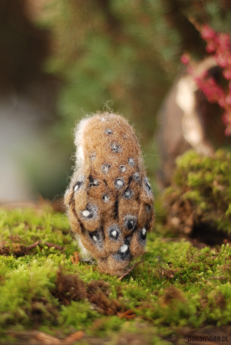 Sowa, powstała metodą filcowania na sucho z wełny merynos.