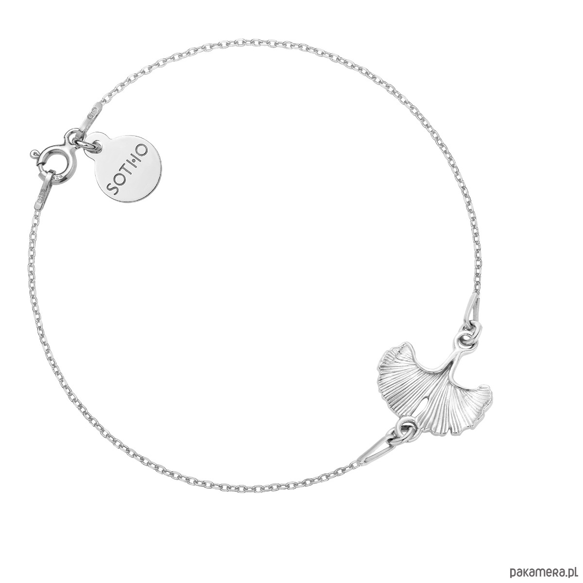bransoletka sznurkowa z czarnym sznurkiem i zapięciem w formie supełków (umożliwiających regulację) o długości 15-20cm z srebrnym liściem miłorzębu.
