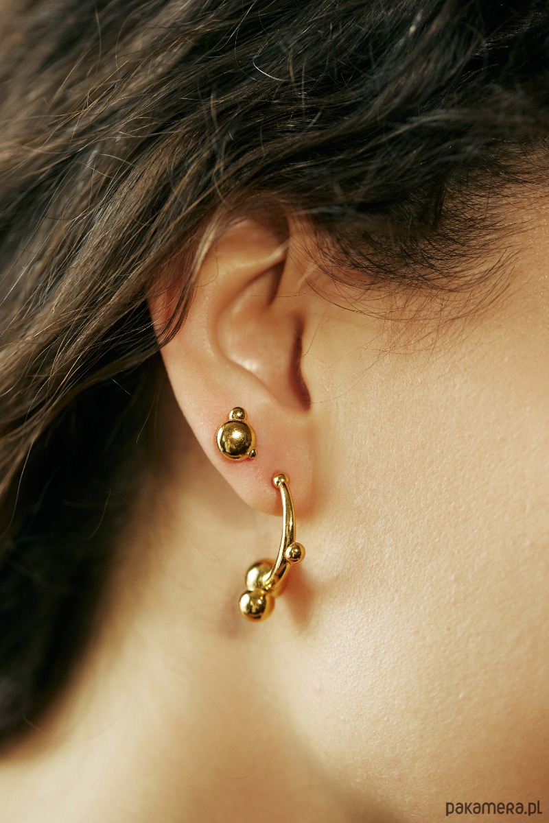 SPHERE / SFERY / BUBBLES/ BAŃKI / KULKI. Kolekcja SPHERE to zabawa formą. Jest to ukłon w stronę podstawowej bryły geometrycznej czyli kuli. Formy te kojarzą się z lekkością i zabawą. Nawiązują do lekkości baniek mydlanych. Bąbelki są nieregularne i w wielu elementach, tak jak wspomniane bańki mydlane tworzą zlepek kilku SFER. Nie dajcie się zwieźć, nasze kule nie są puste w środku. Wszystkie formy są solidne, i w pełni wykonane z metalu, dzięki czemu są trwałe. Nie obawiaj się, że Twoja biżuteria pęknie jak bańka mydlana ;)