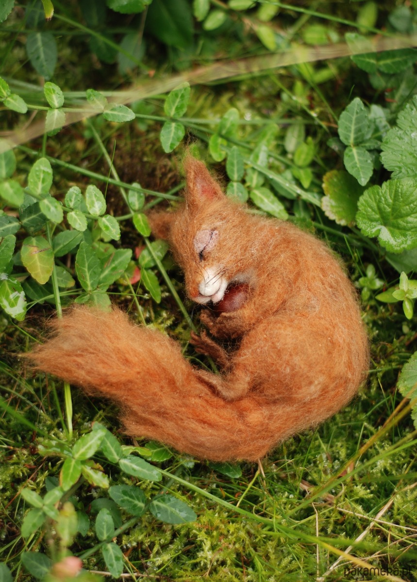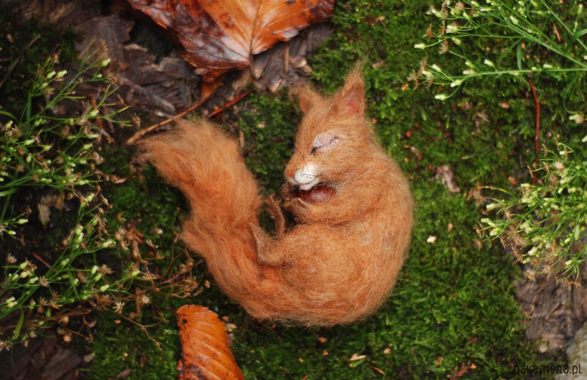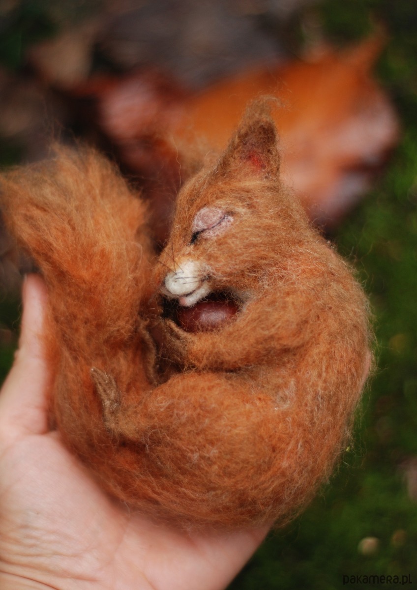 Wiewiórka wykonany metodą filcowania na sucho z wełny merynos.