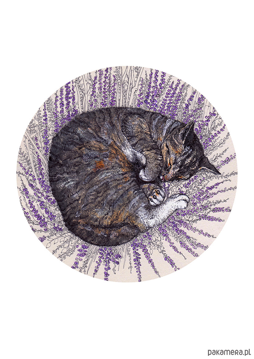 Śpiący kot- plakat- ilustracja