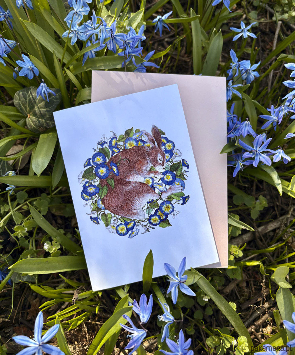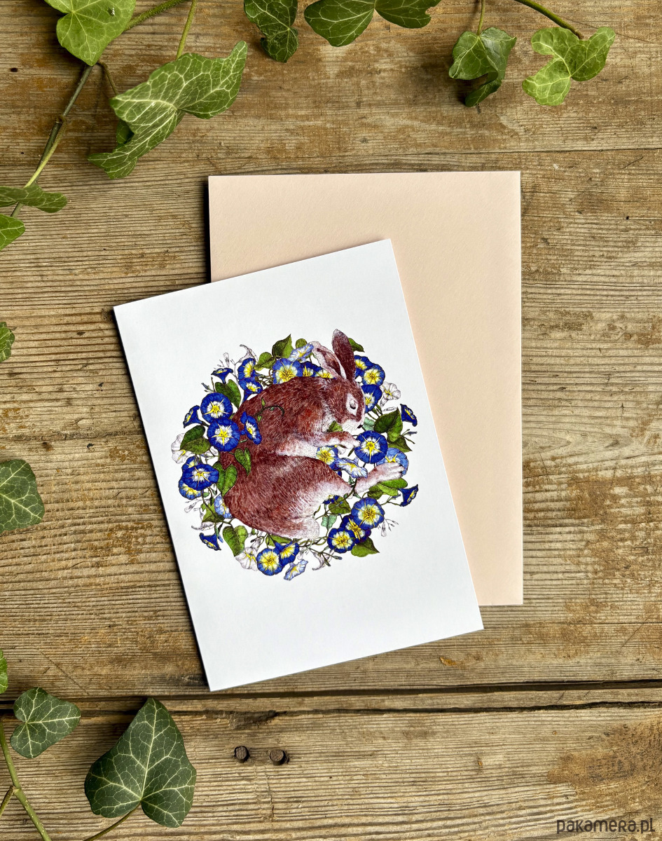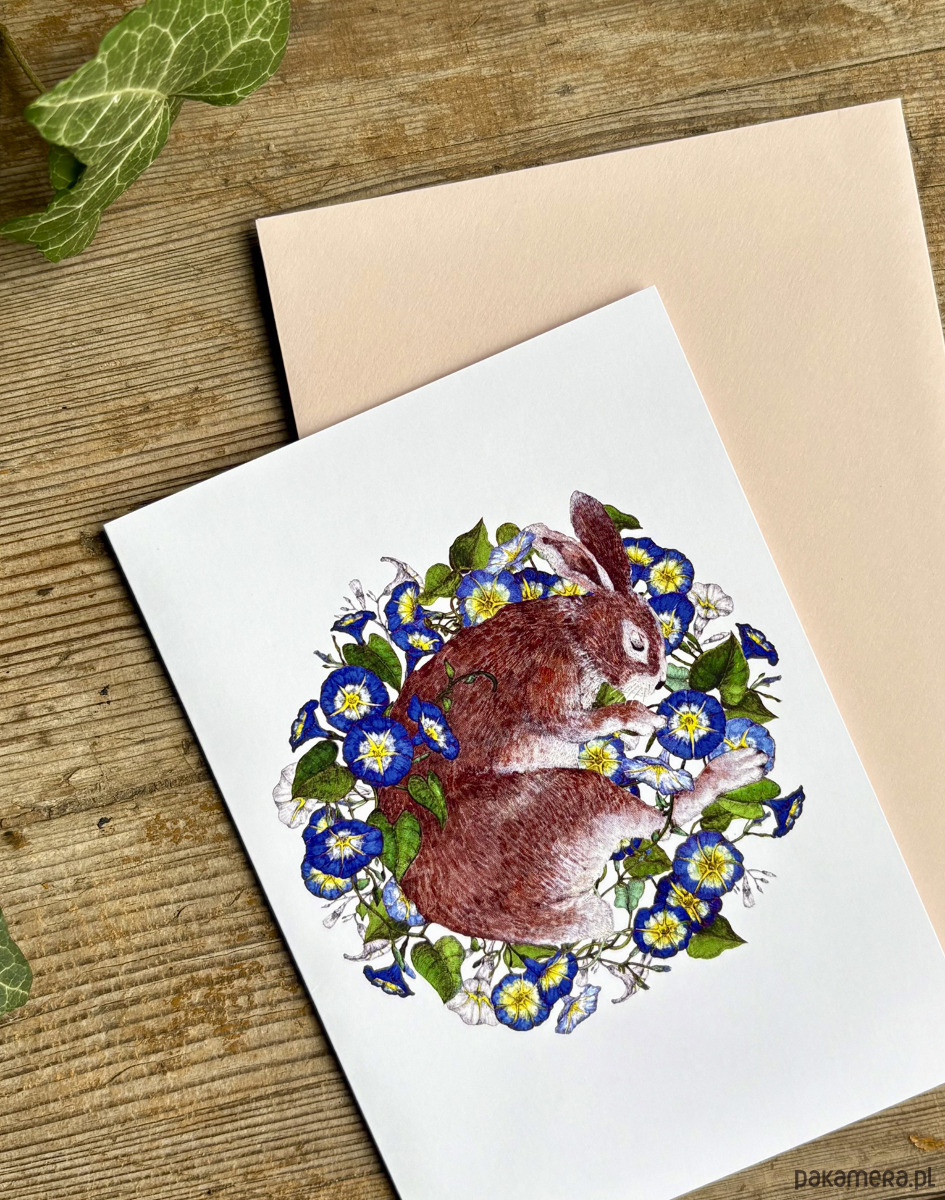 Śpiący królik- Kartka- grafika- ilustracja
