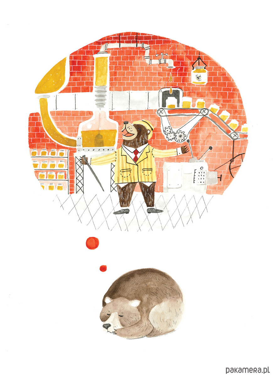 Stary niedźwiedź mocno śpi i śni o wielkiej fabryce miodu, bóbr nadzoruje budowę olbrzymiej tamy, a wilk poleciał rakietą aż na księżyc, o zdobyciu którego marzył każdej nocy. Każdy zwierzak zamieszkujący czaromalarowe lasy ma kolorowe sny.