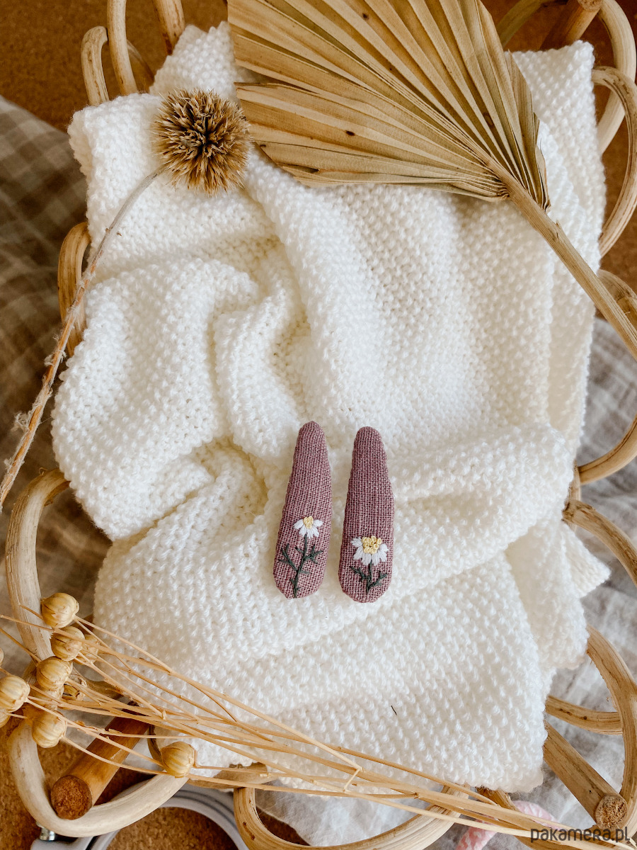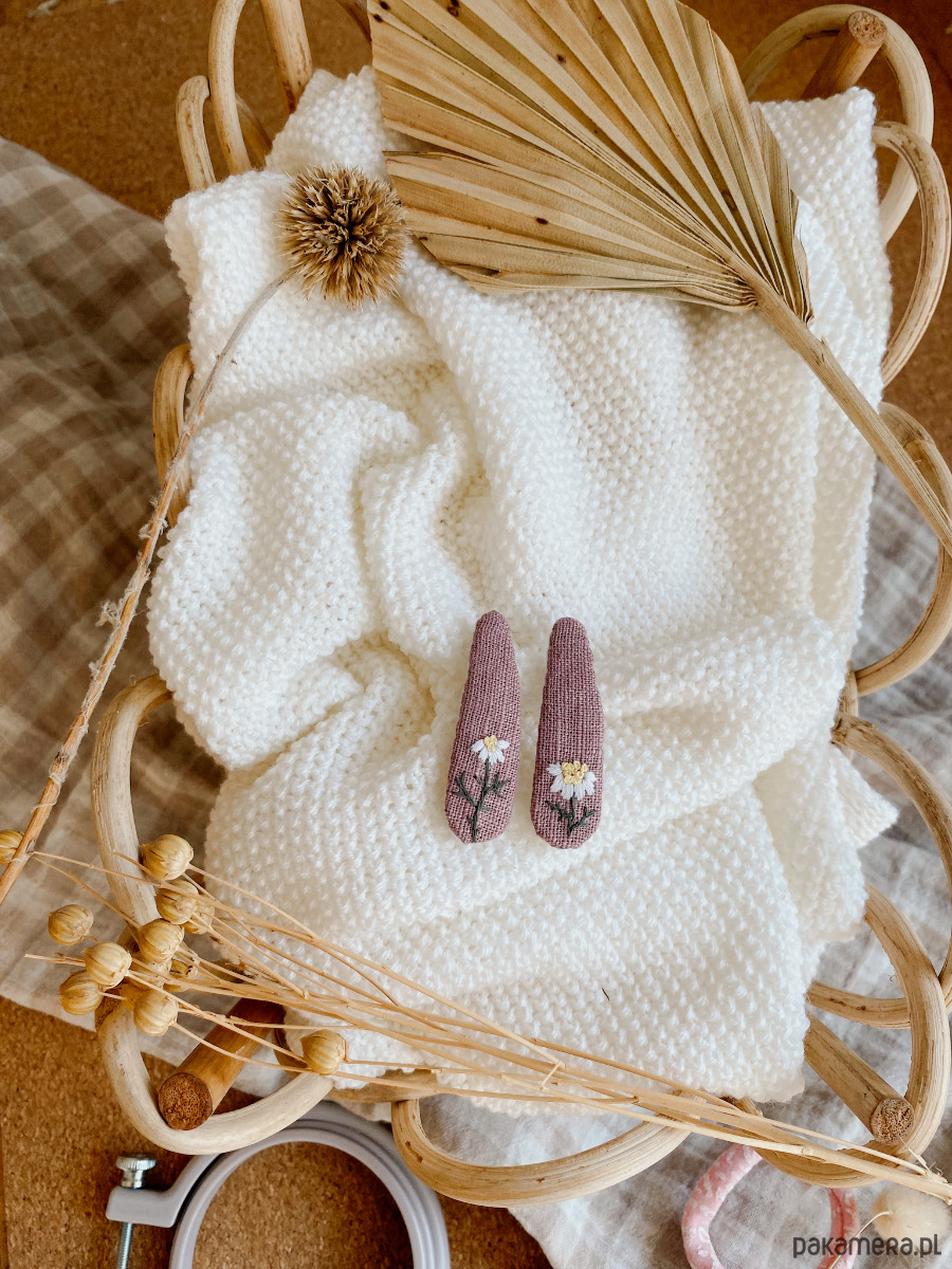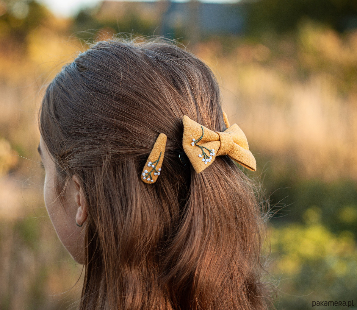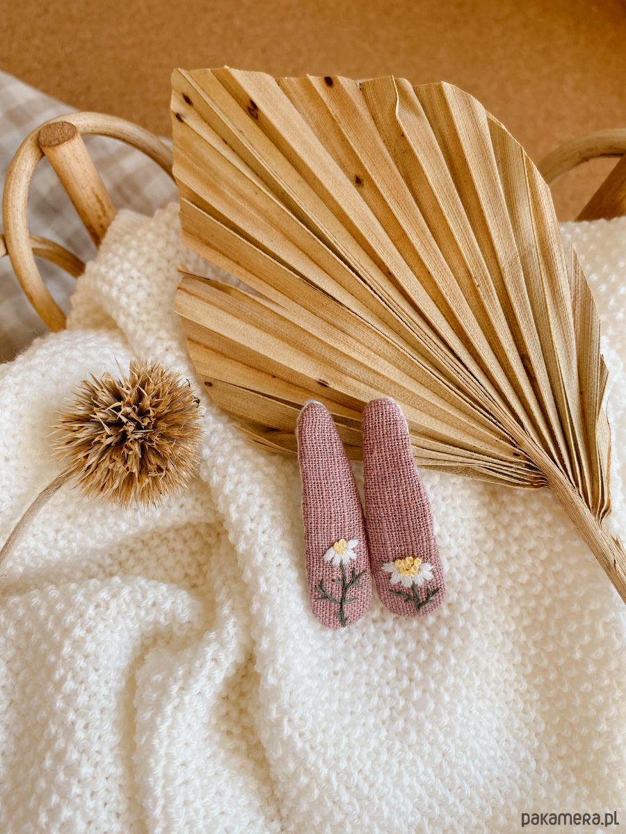 Małe, niepozorne, a potrafią ujarzmić niejeden kosmyk! Takie są haftowane spineczki "pyki". To elegancka i urocza ozdoba zarówno dla młodszych jak i starszych dzieci.