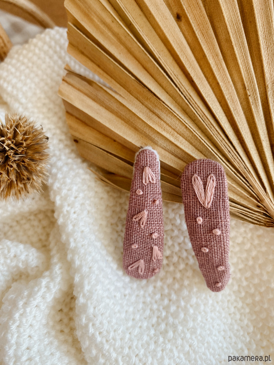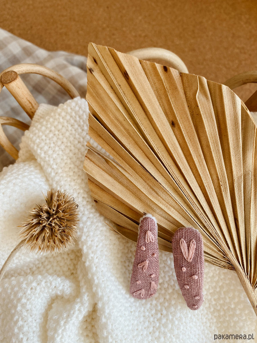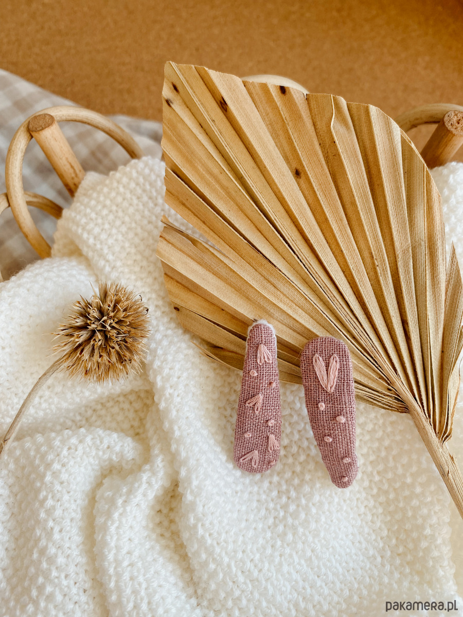 Małe, niepozorne, a potrafią ujarzmić niejeden kosmyk! Takie są haftowane spineczki "pyki". To elegancka i urocza ozdoba zarówno dla młodszych jak i starszych dzieci.