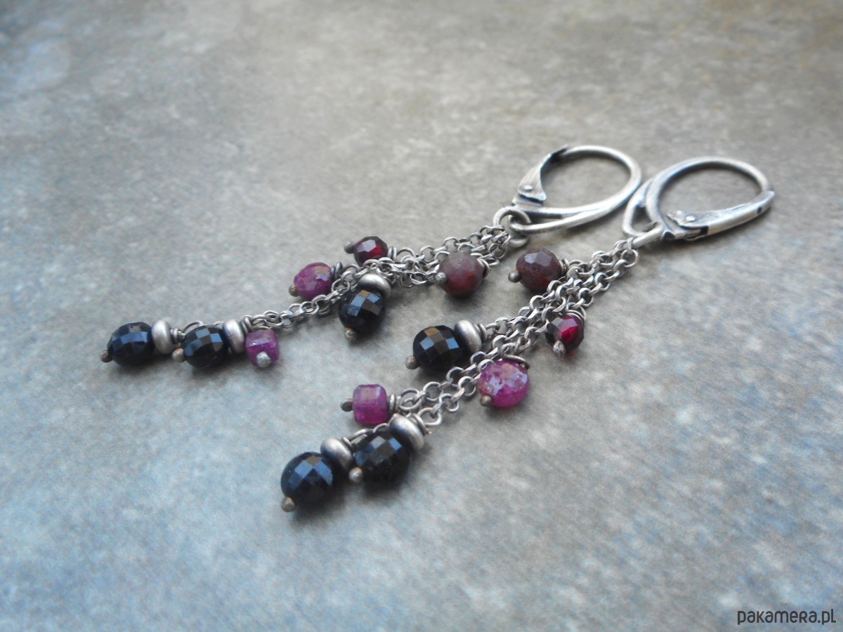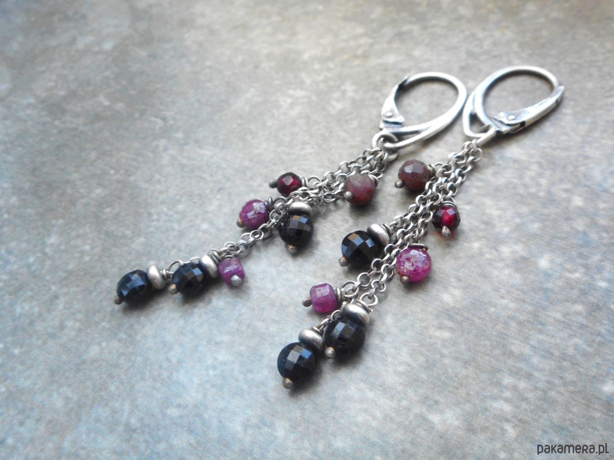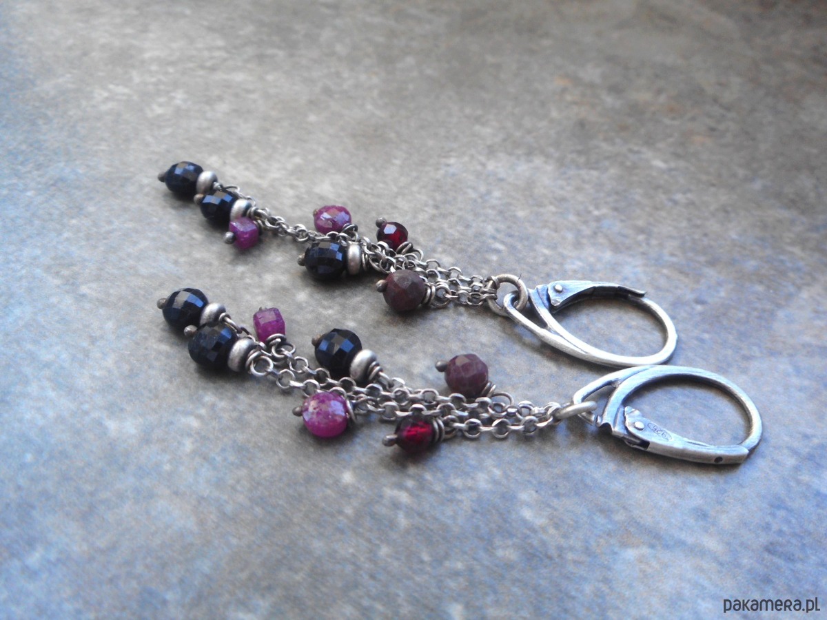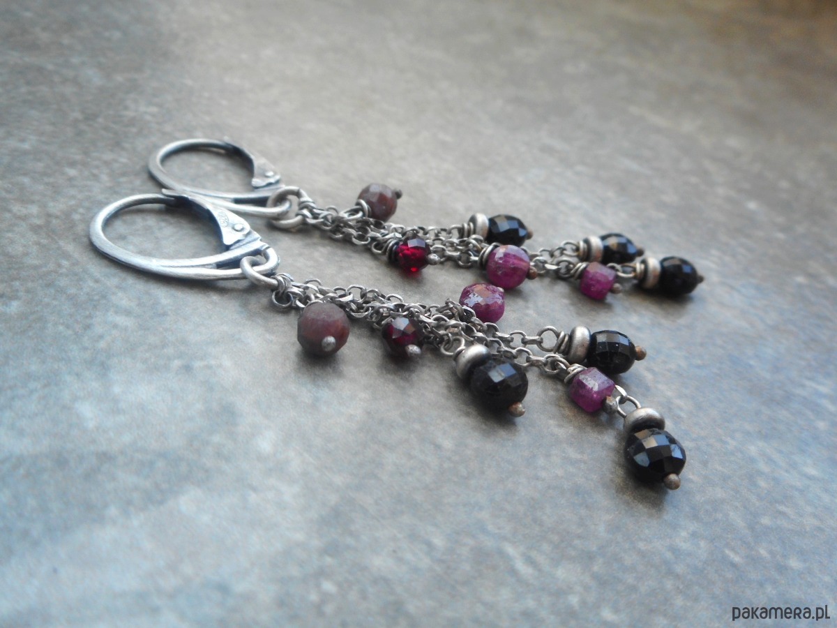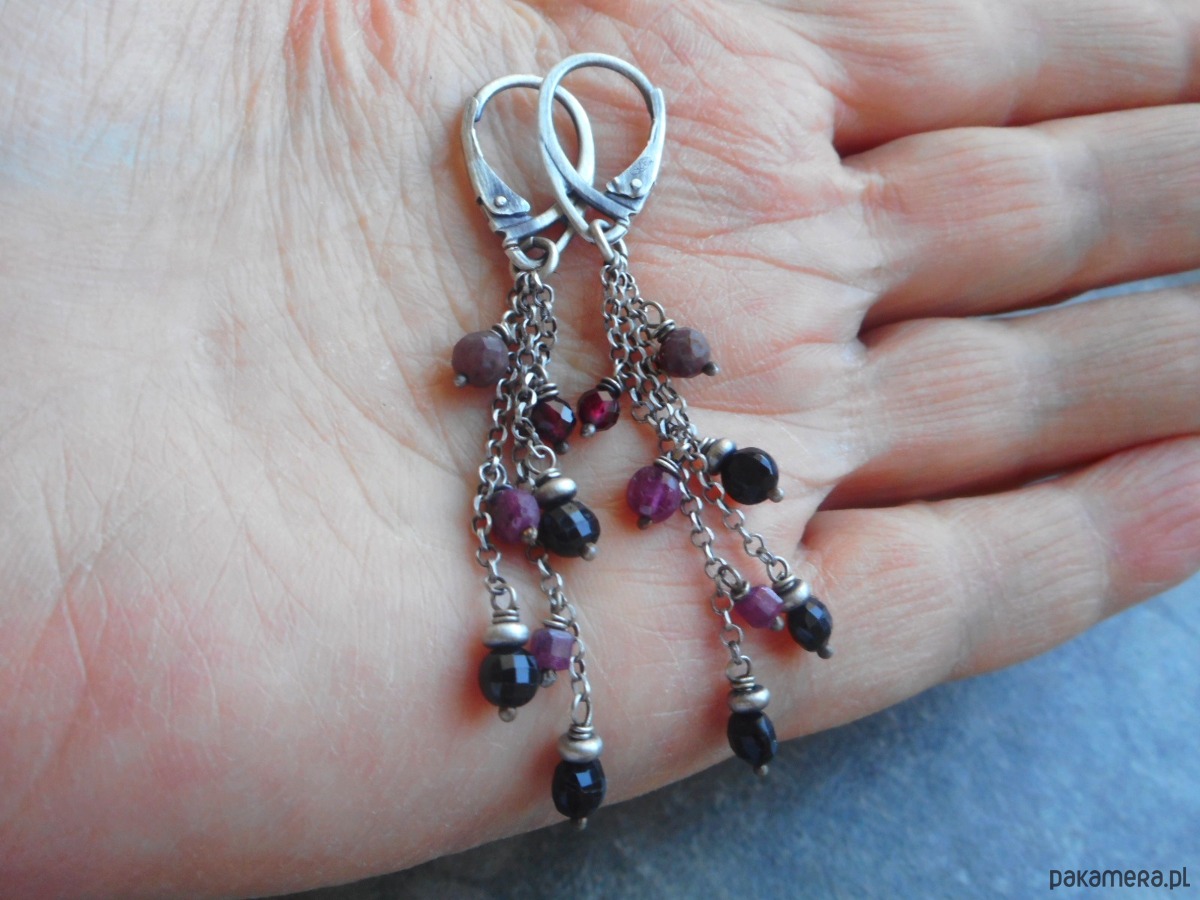 Wyjątkowe kolczyki z kamieni naturalnych i szlachetnego srebra, delikatne i lekkie, w formie gałązek ozdobionych drobnymi minerałami.