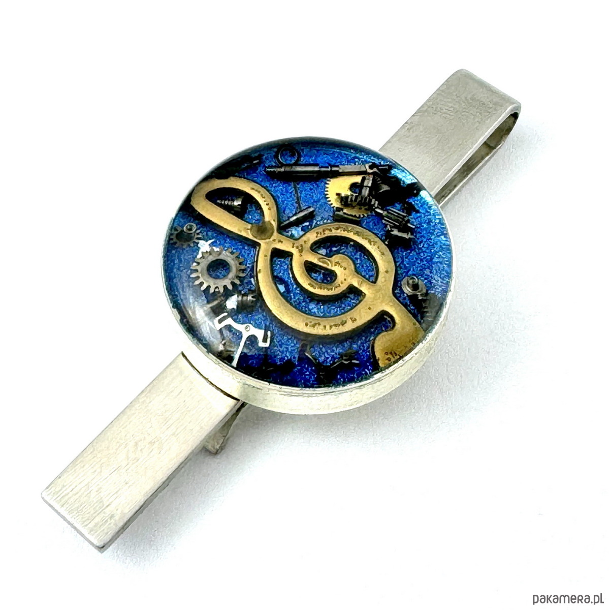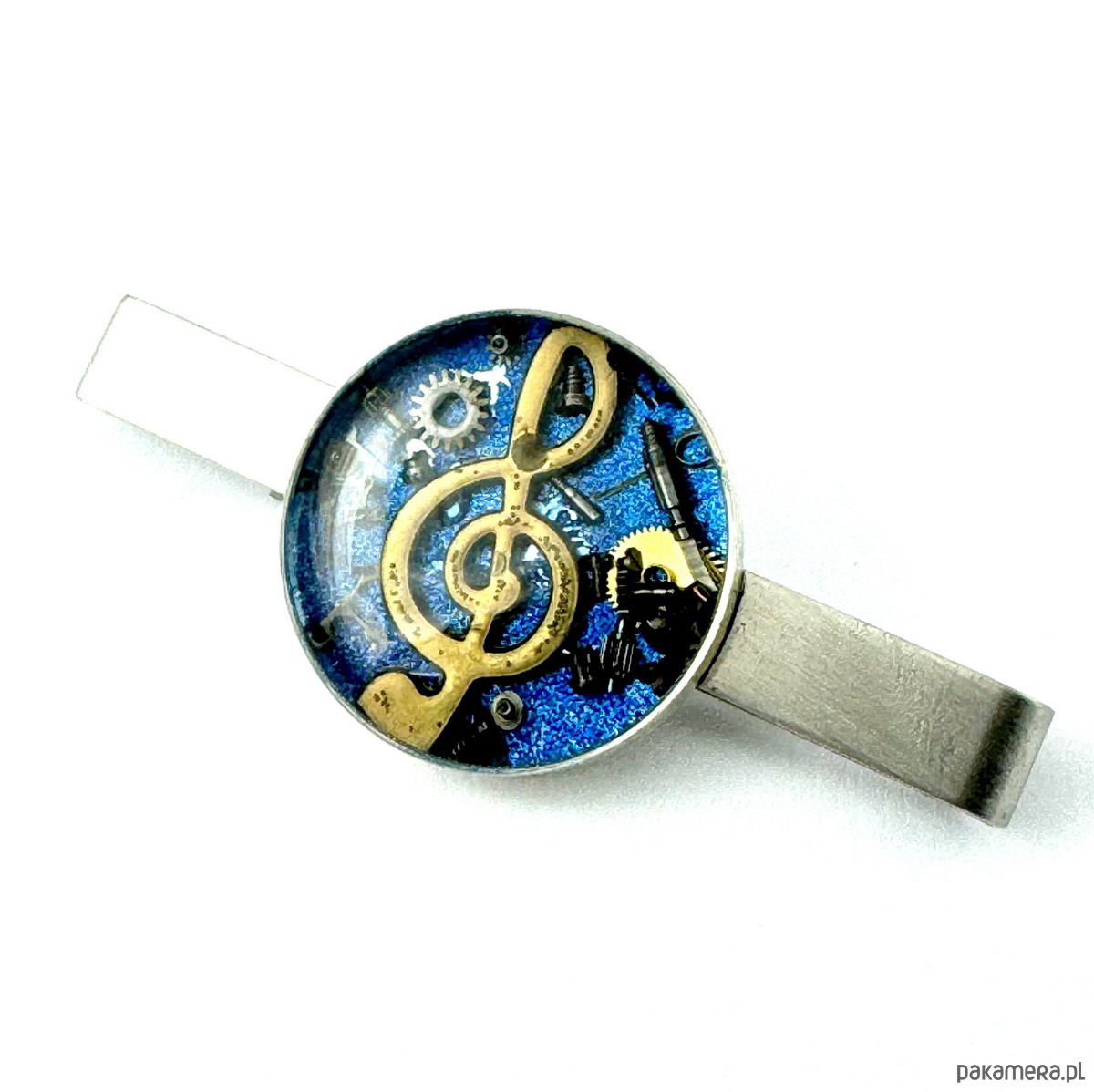 Ręcznie wykonana spinka do krawata, w bazie zatopiony klucz wiolinowy.