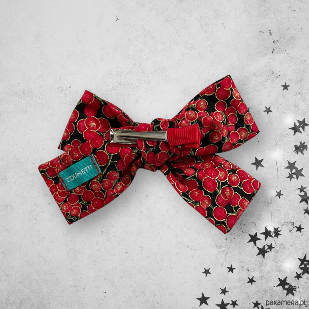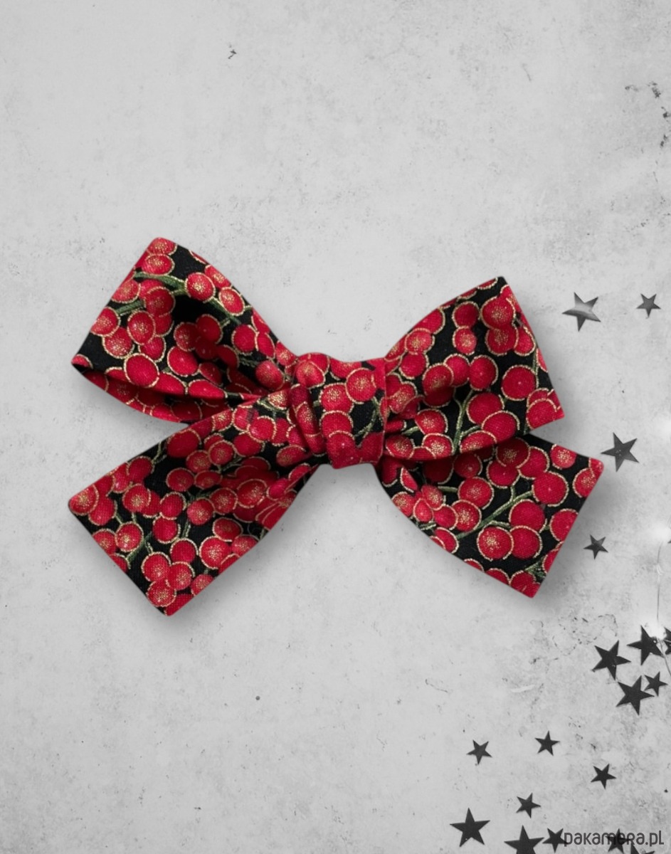 Spinka do włosów kokardka duża świąteczna czerwone zimowe jagody