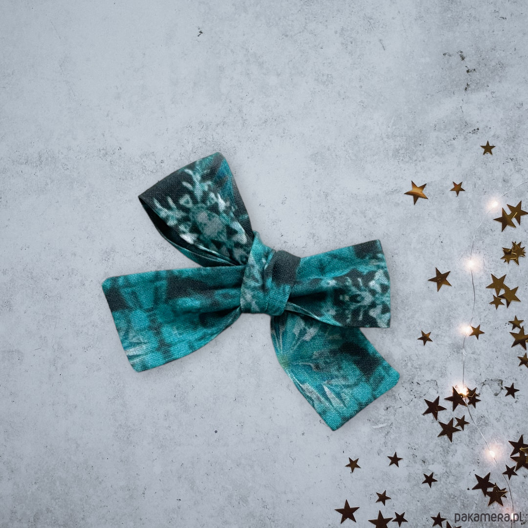 Spinka do włosów kokardka świąteczna śnieżynki niebieska