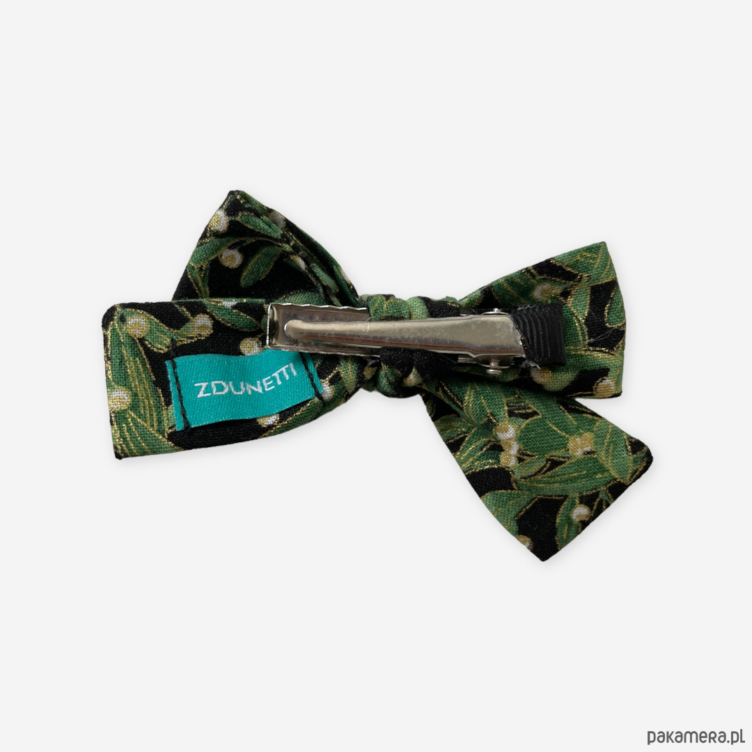 Spinka do włosów kokardka świąteczna jemioła zielona