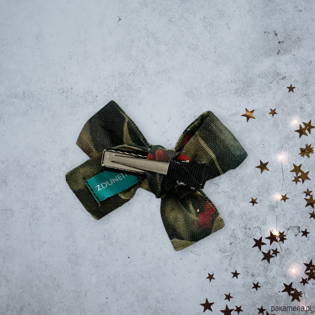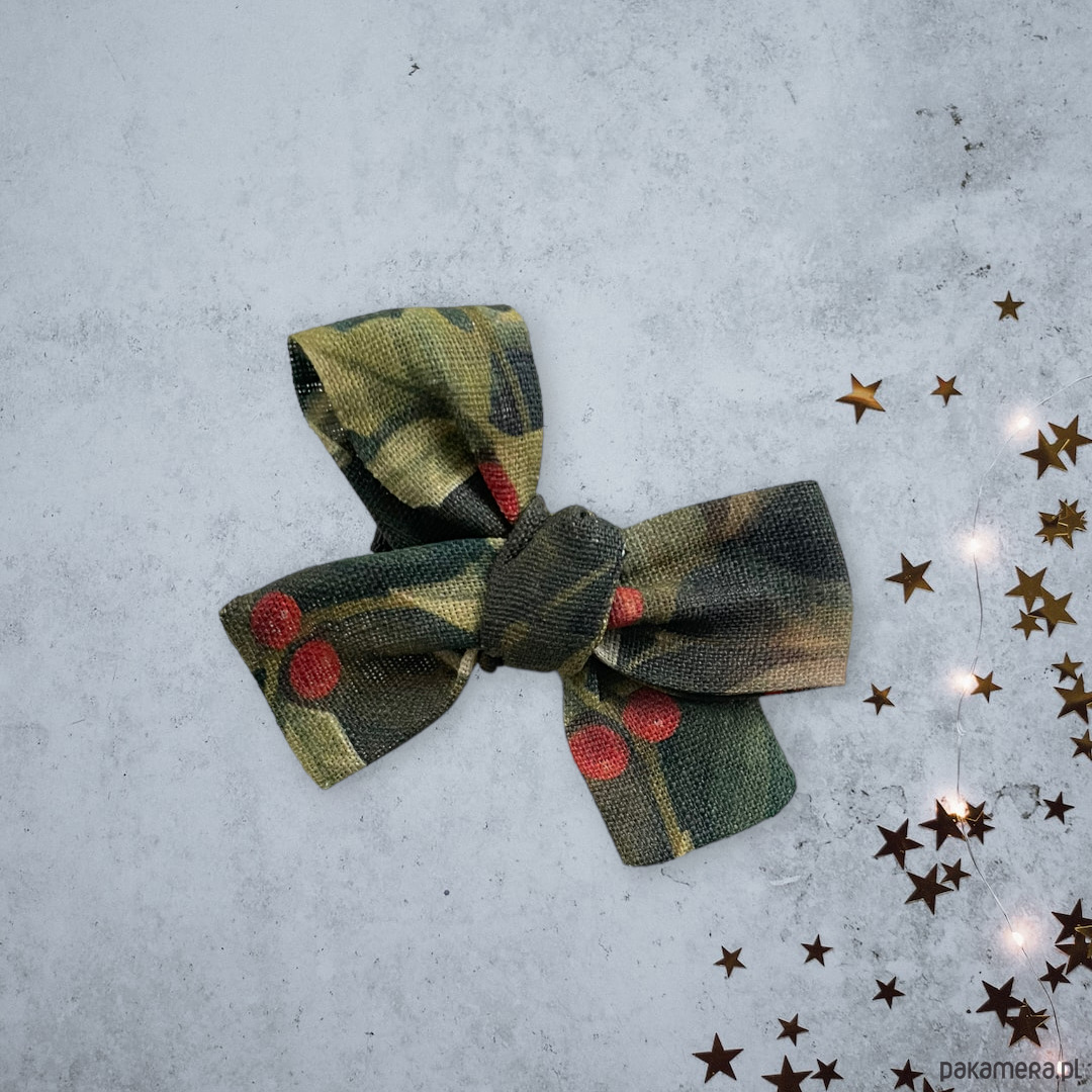 Spinka do włosów kokardka świąteczna lniana jemioła