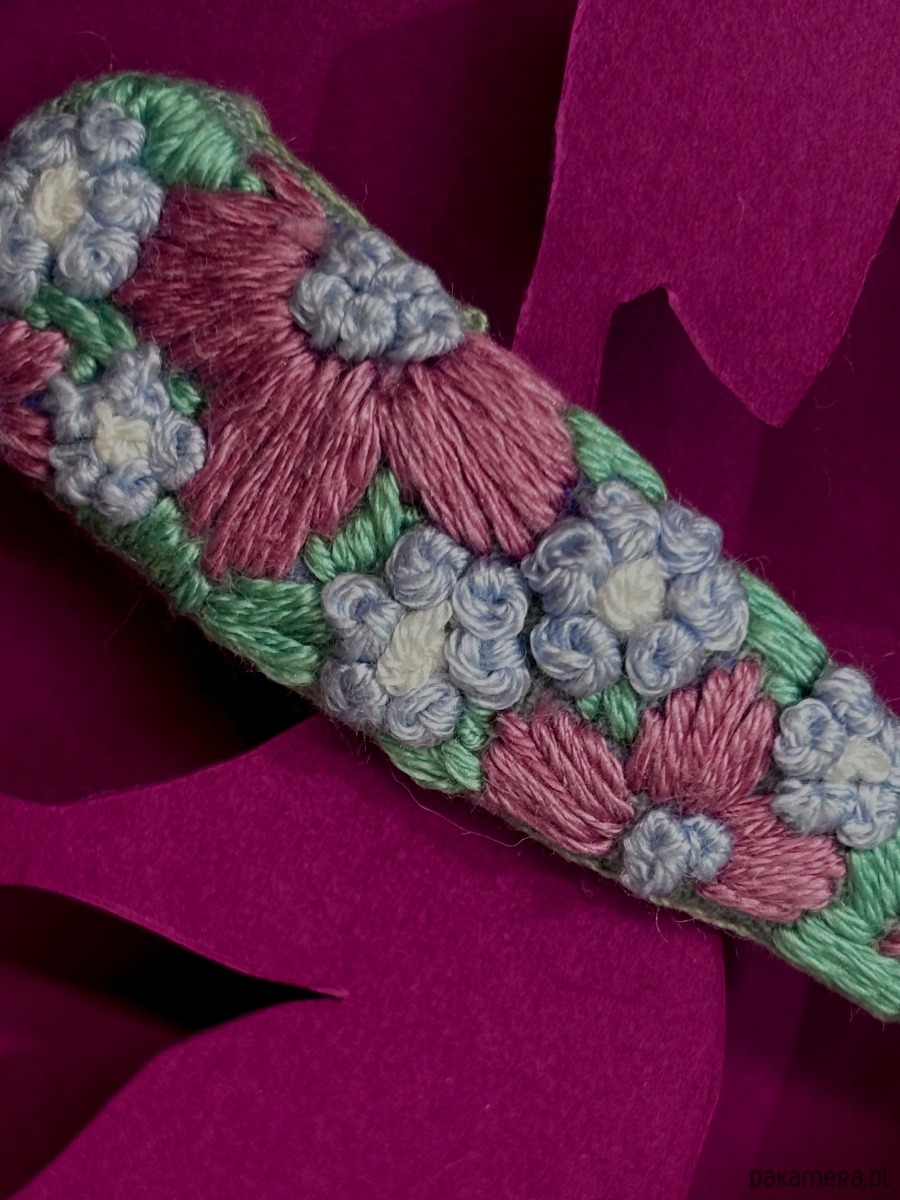Spinka z malwami jest zaprojektowana w Polsce, starannie ręcznie wyszyta bawełnianą muliną na szałwiowej bawełnie, od spodu podszyta wiskozowo-wełnianym filcem.