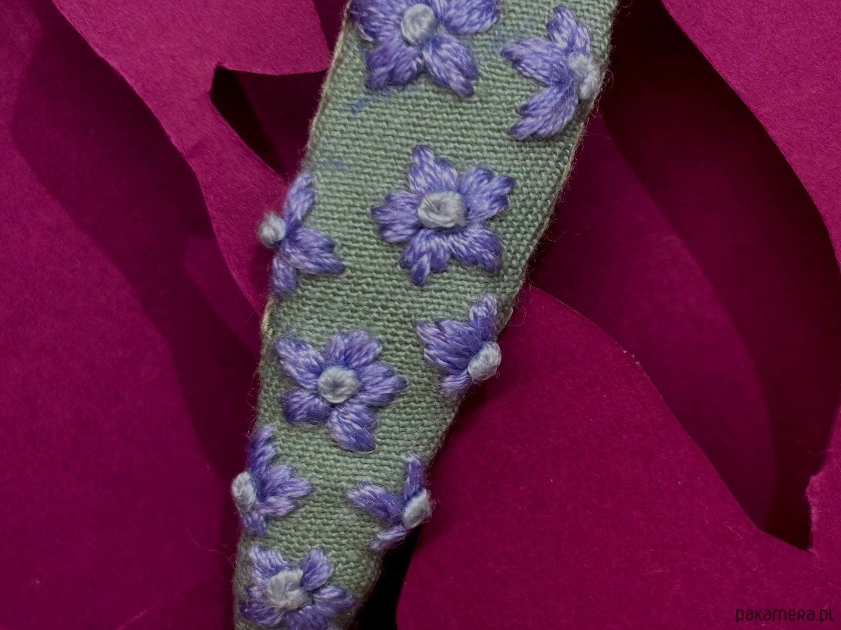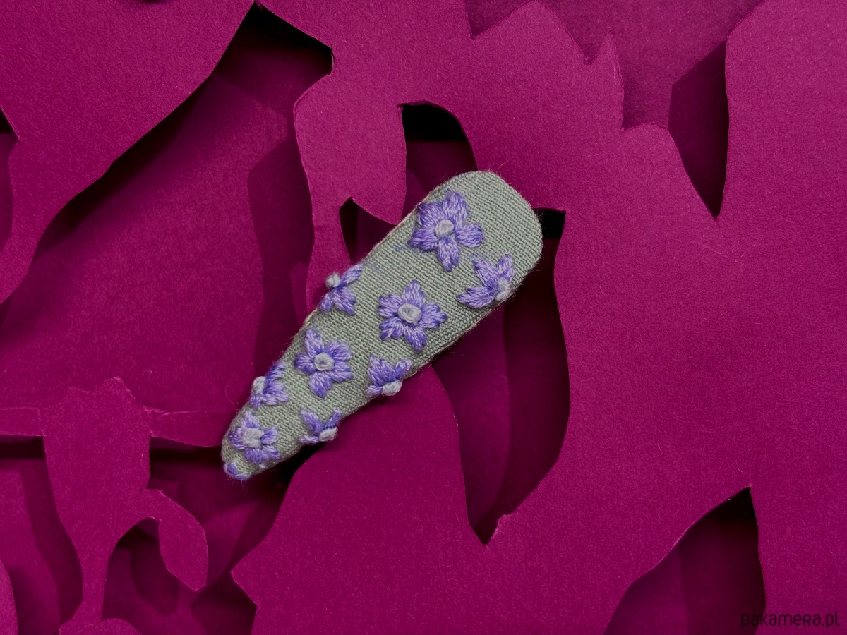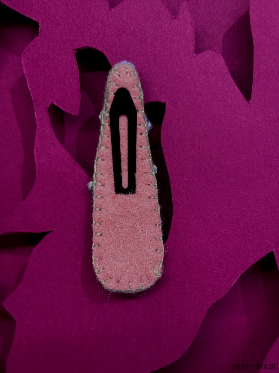 Spinka z sasankami jest zaprojektowana w Polsce, starannie ręcznie wyszyta bawełnianą muliną na szałwiowej bawełnie, od spodu podszyta wiskozowo-wełnianym filcem.