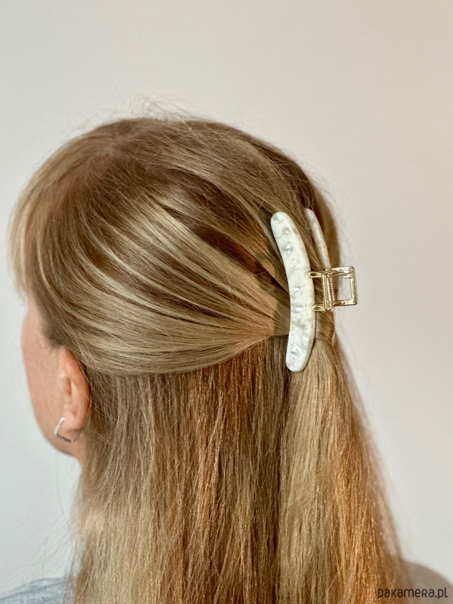 Spinka GRACE w kolorze Pearl wykonana jest z octanu celulozy i metalowej spinki.