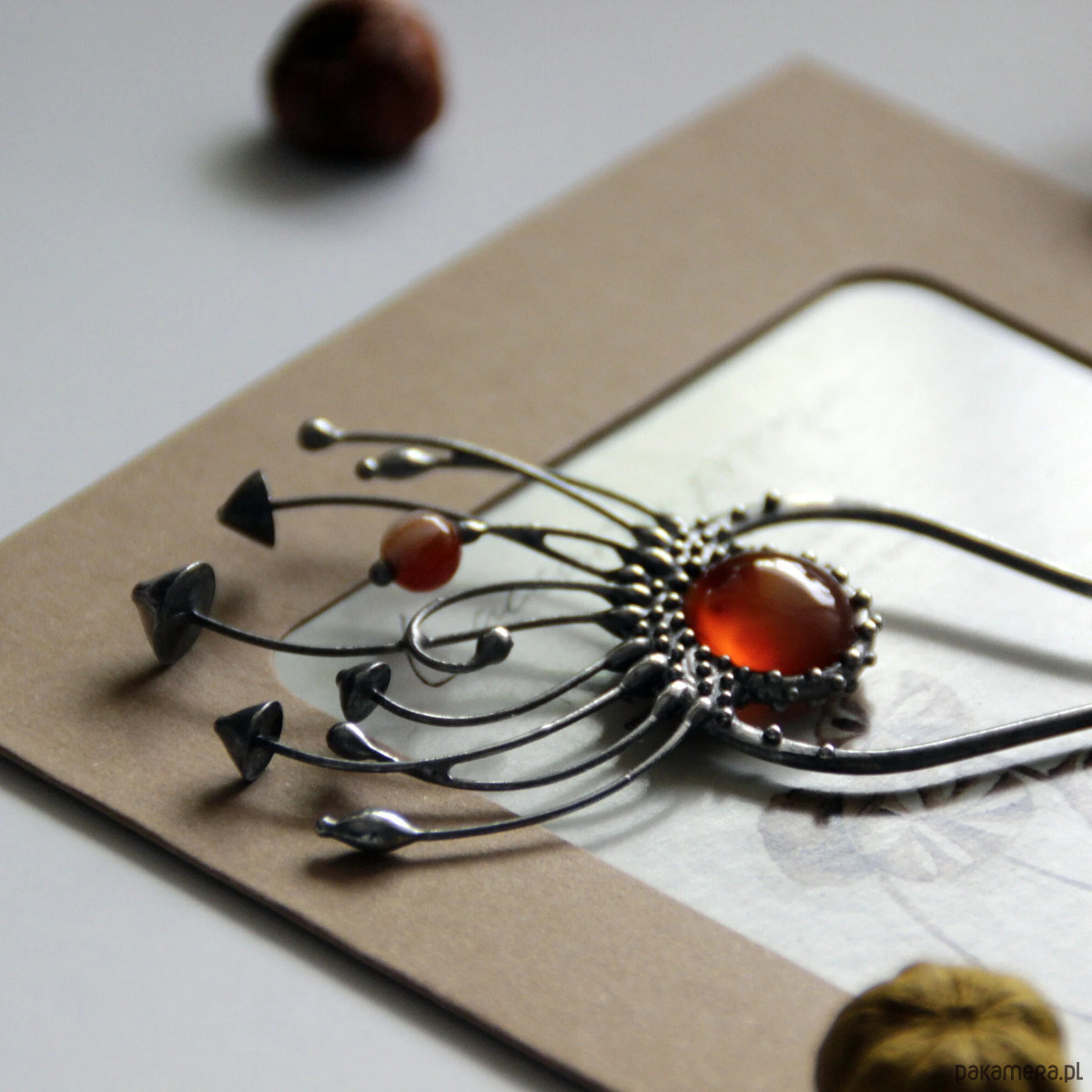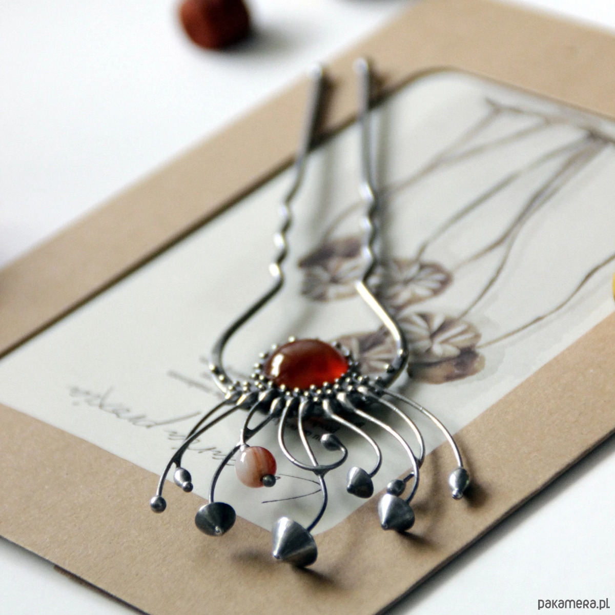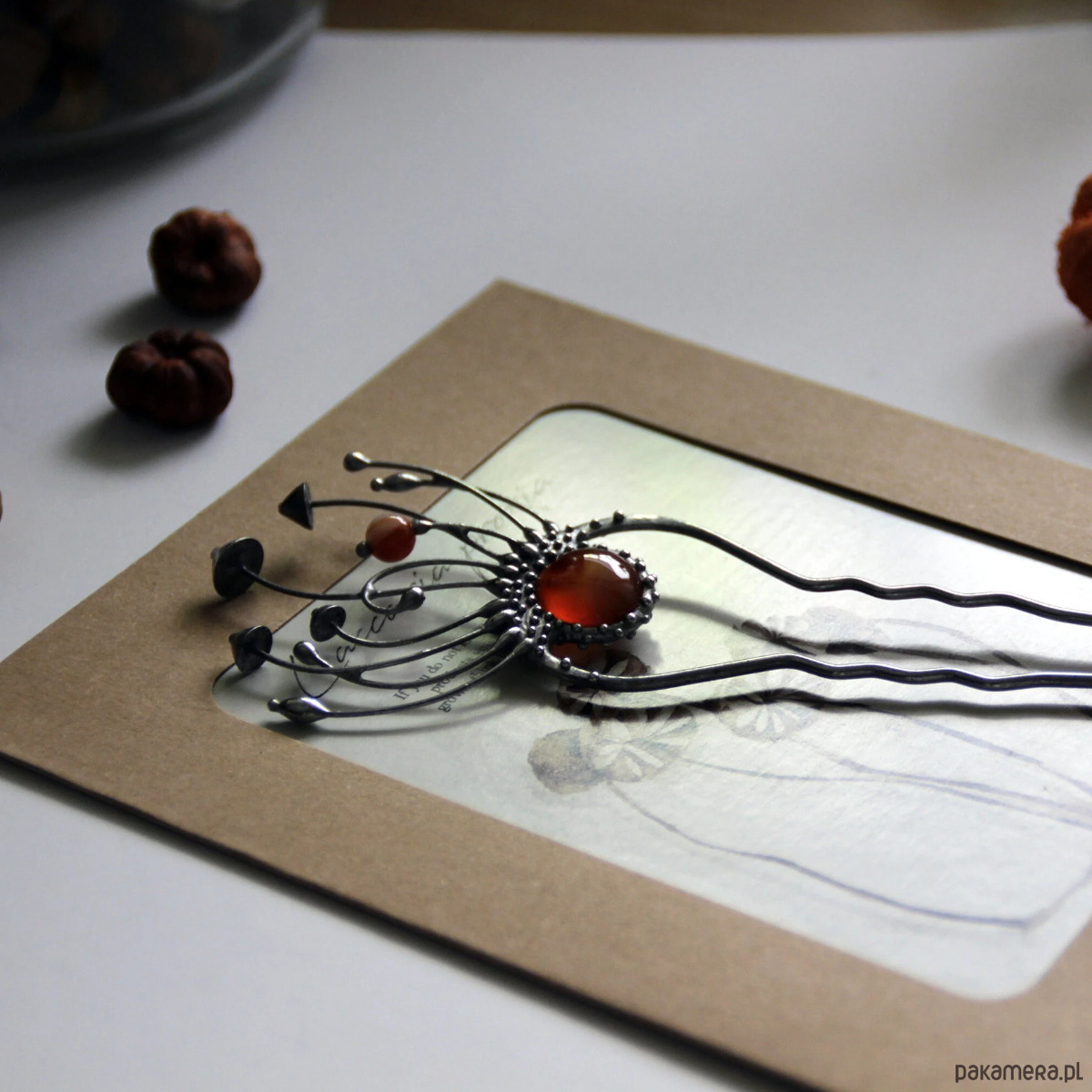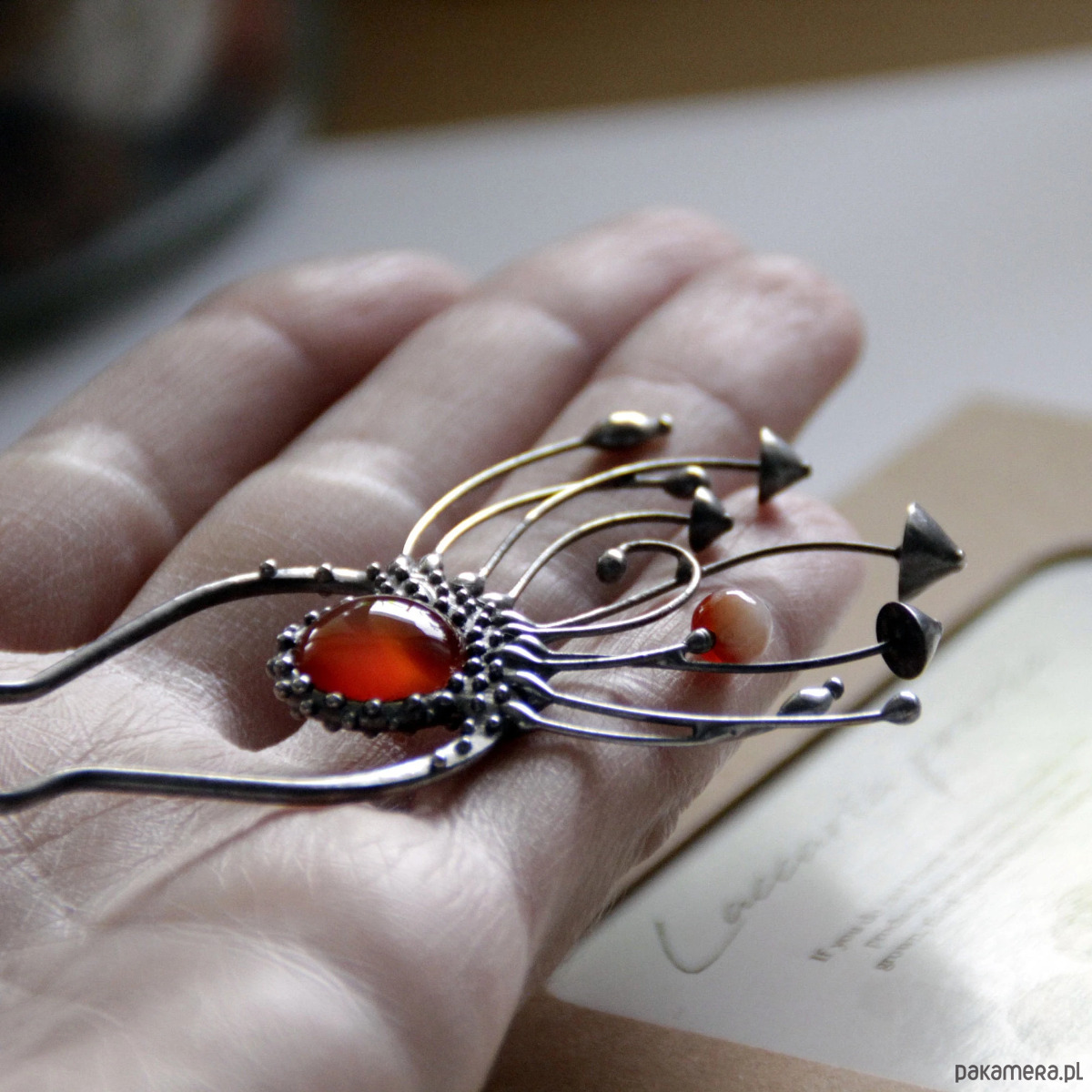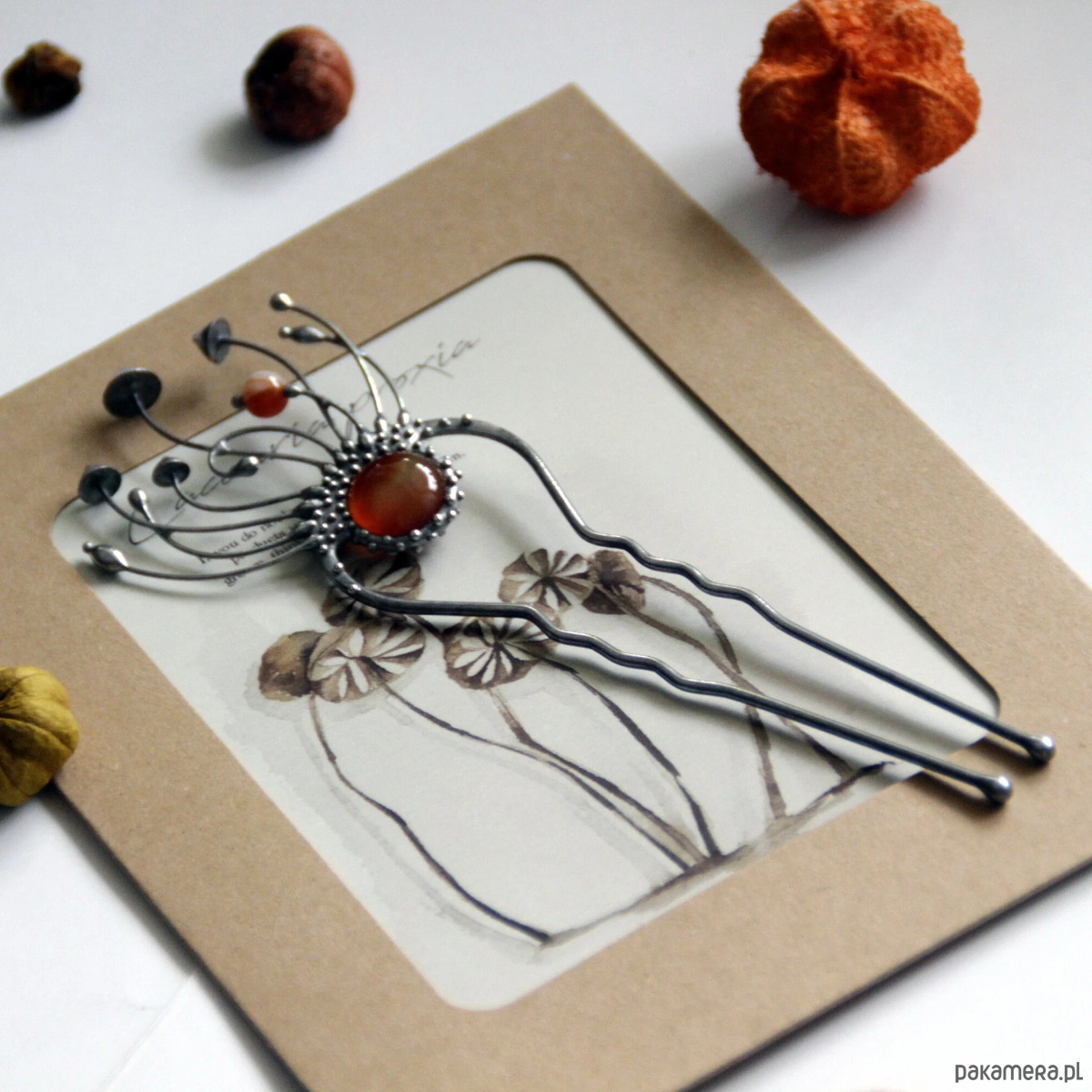 Srebrna metalowa magiczna grzybowa spinka do włosów w stylu cottagecore i czarownic. Poddana obróbce antyoksydacyjnej, szlifowana, polerowana. Niezwykła i solidna biżuteria w stylu czarownic, inspirowana dziką naturą. Wszystkie elementy są wykonane ręcznie, co zapewnia indywidualność każdego produktu wytworzonego w warsztacie Yadovito. Stop cyny i miedzi jest polerowany roztworem wykończeniowym, aby nadać biżuterii szlachetny wygląd, a jednocześnie zapobiec utlenianiu się metalu. Rozmiar około 14,5/4,5 cm. Kolor srebrny/brązowy.