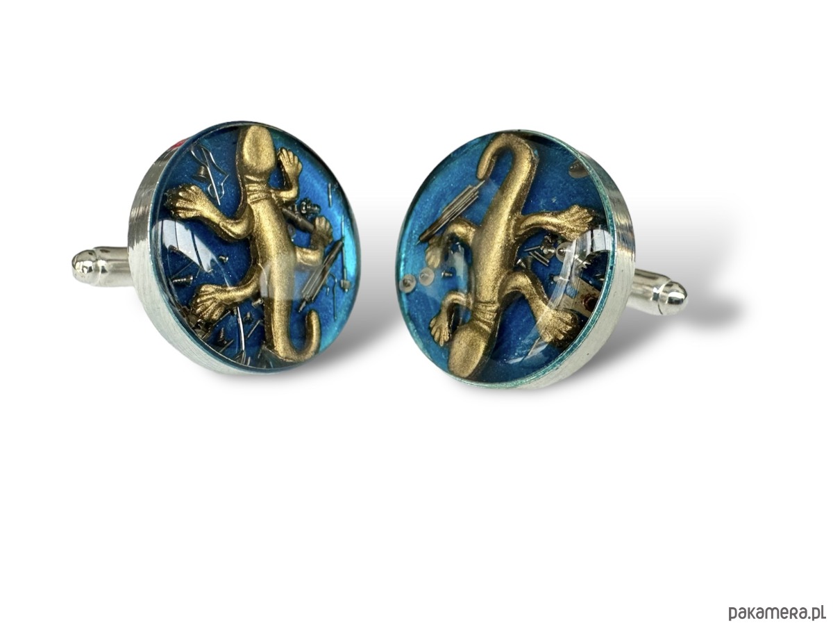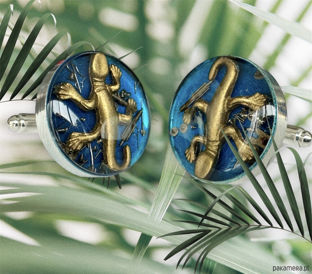 - Wnętrze w kolorze głębokim, mieniącym się kolorze NIEBIESKIM z mosiężną jaszczurką,