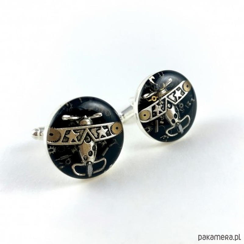 Spinki do mankietów - Aviator Silver (black) - samoloty
