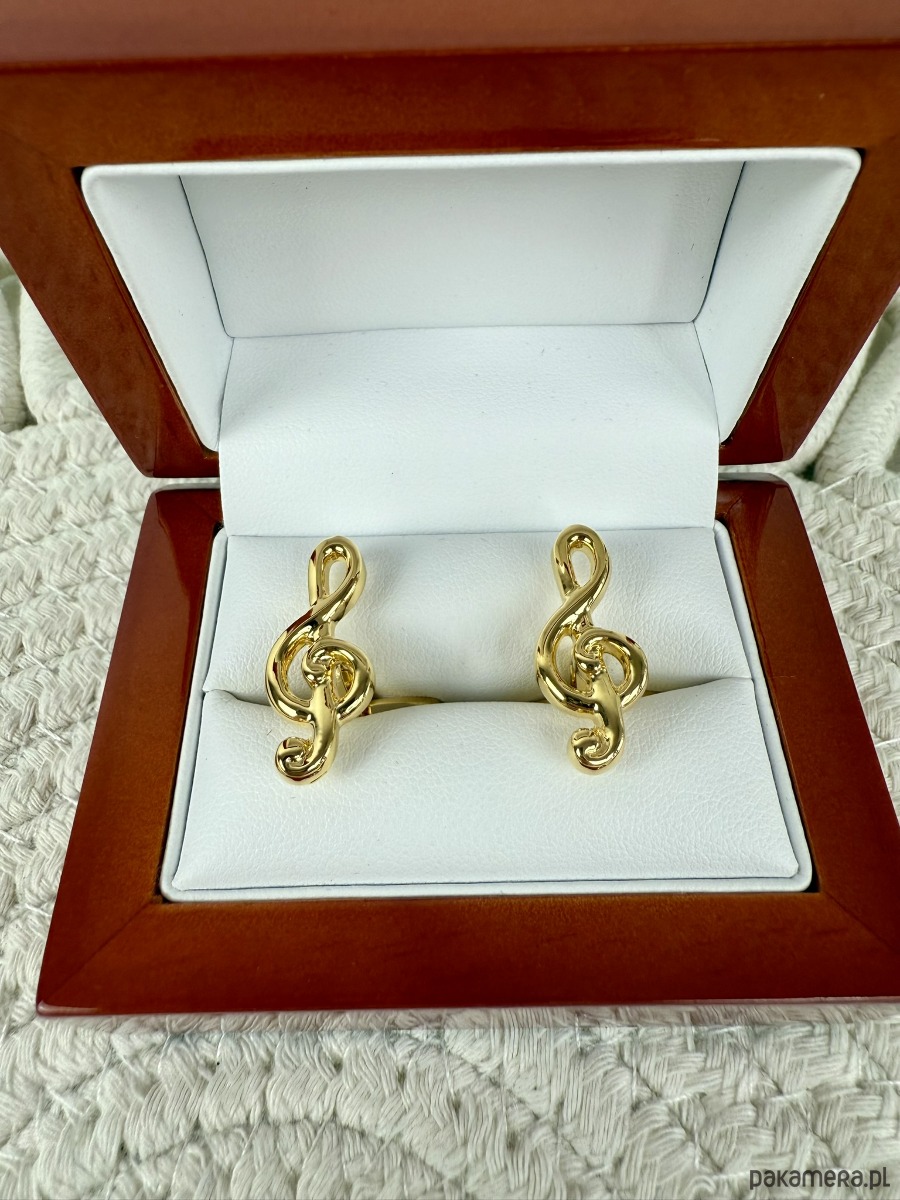 SPINKI DO MANKIETÓW klucz wiolinowy złoty muzyka prezent