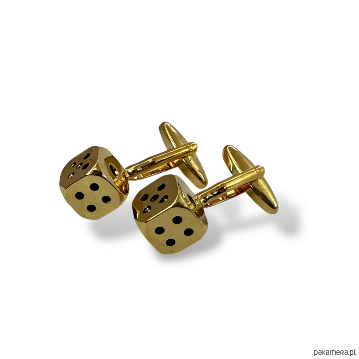 Spinki do mankietów - KOSTKI DLA GRACZA (złote) - stal
