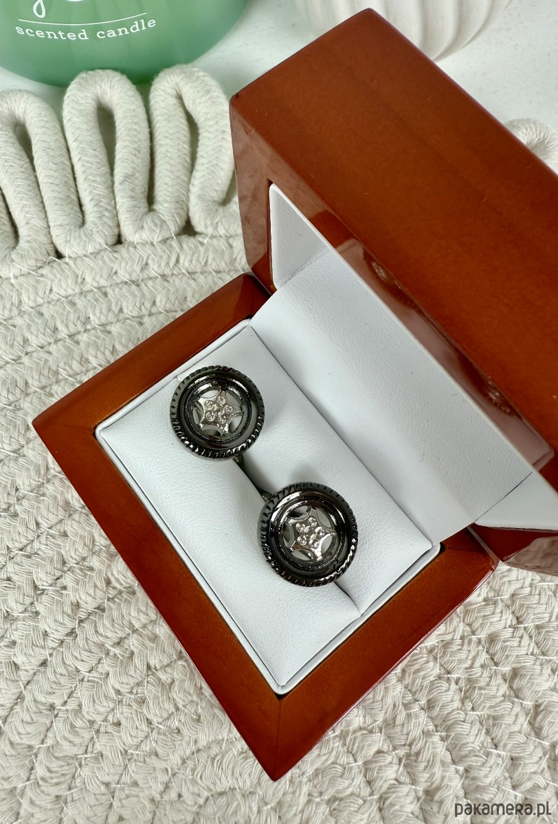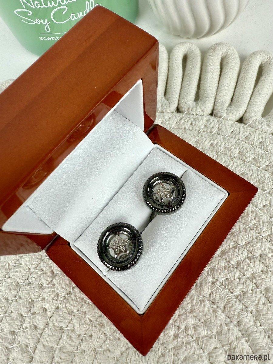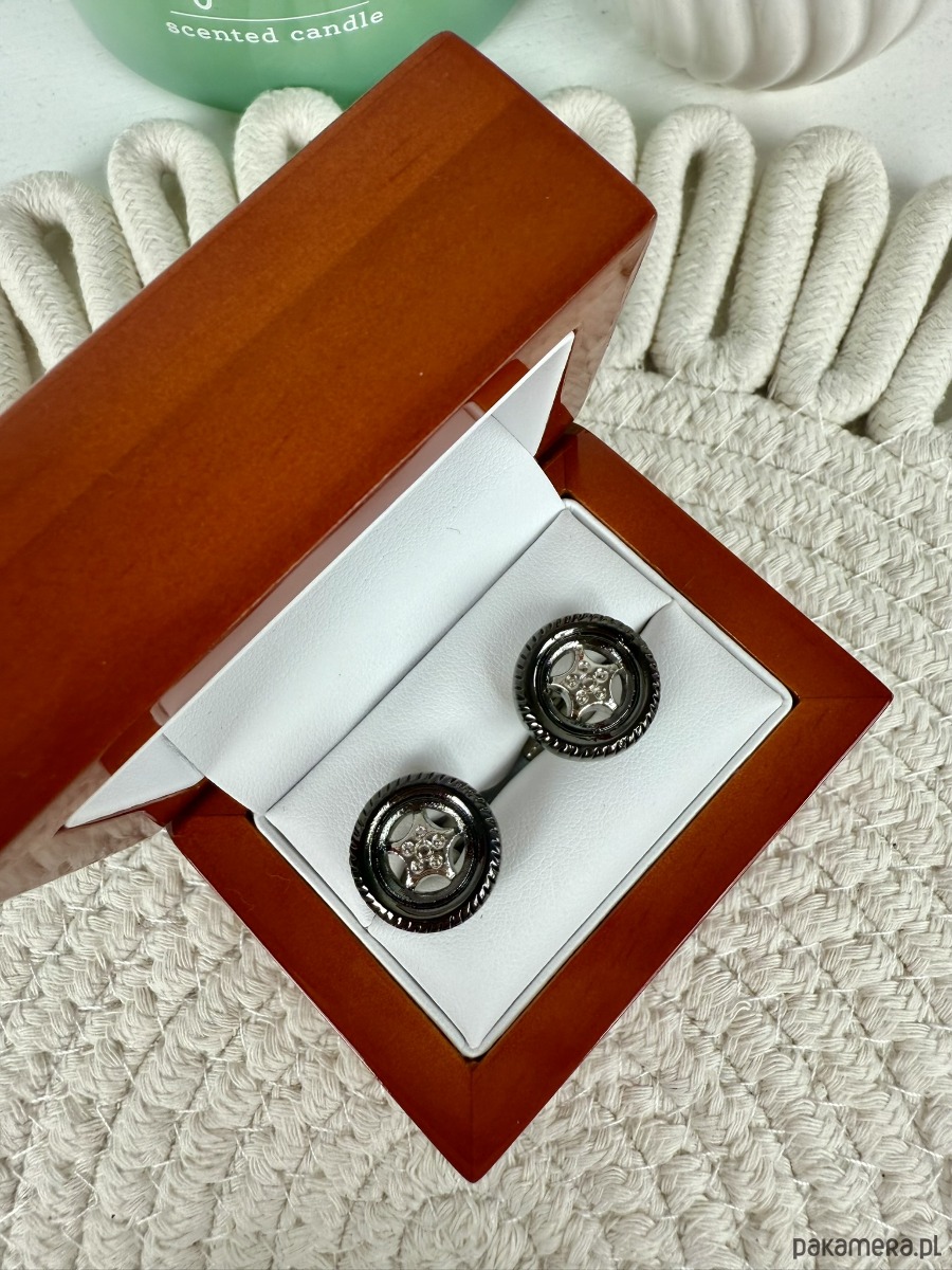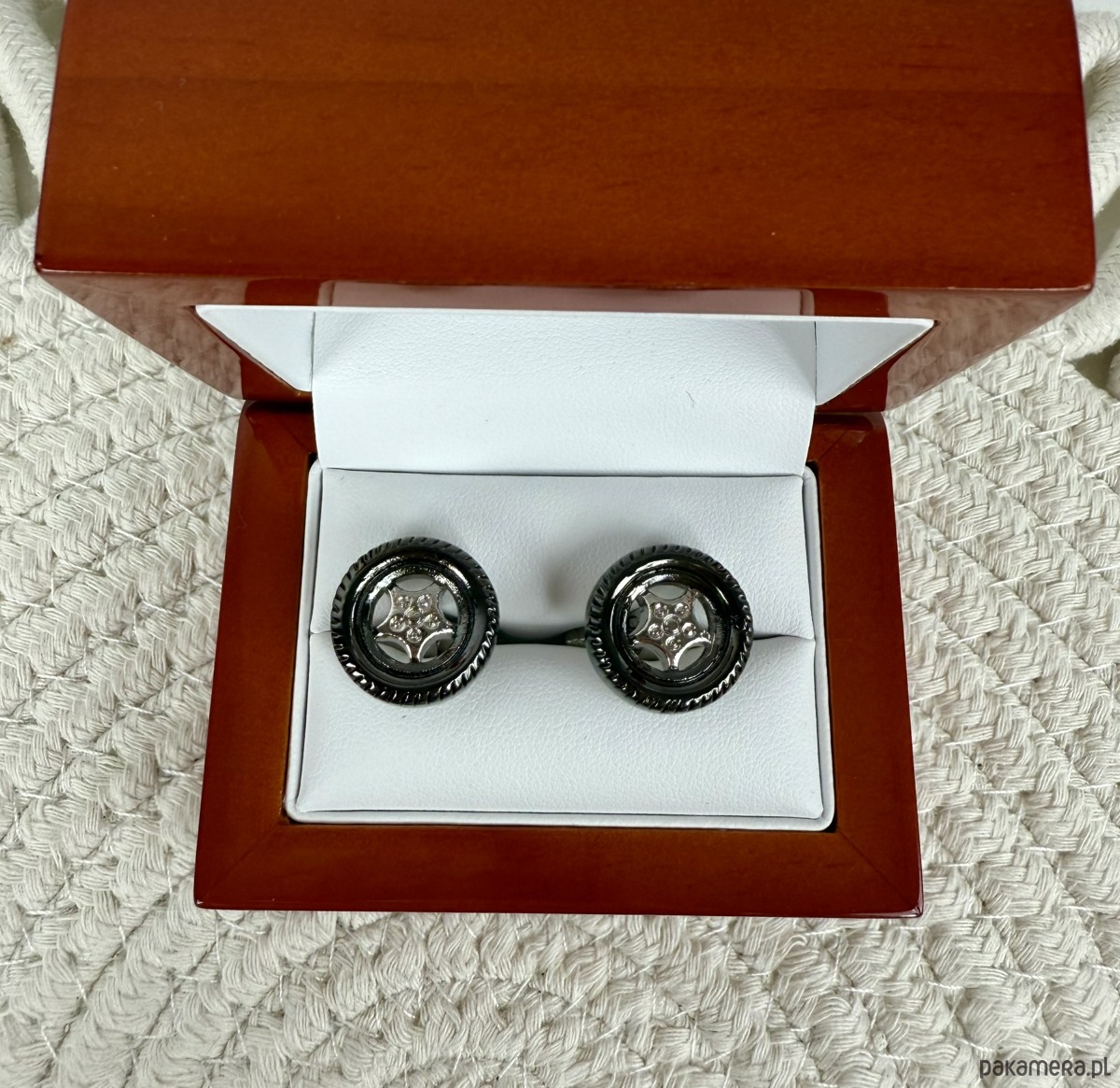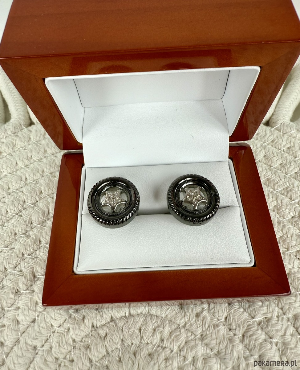 Spinki zapakowane w drewniane pudełko wykończone na wysoki połysk