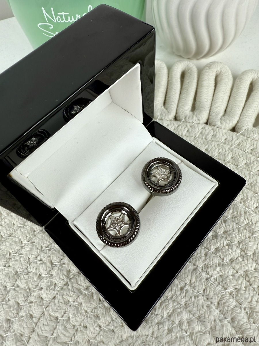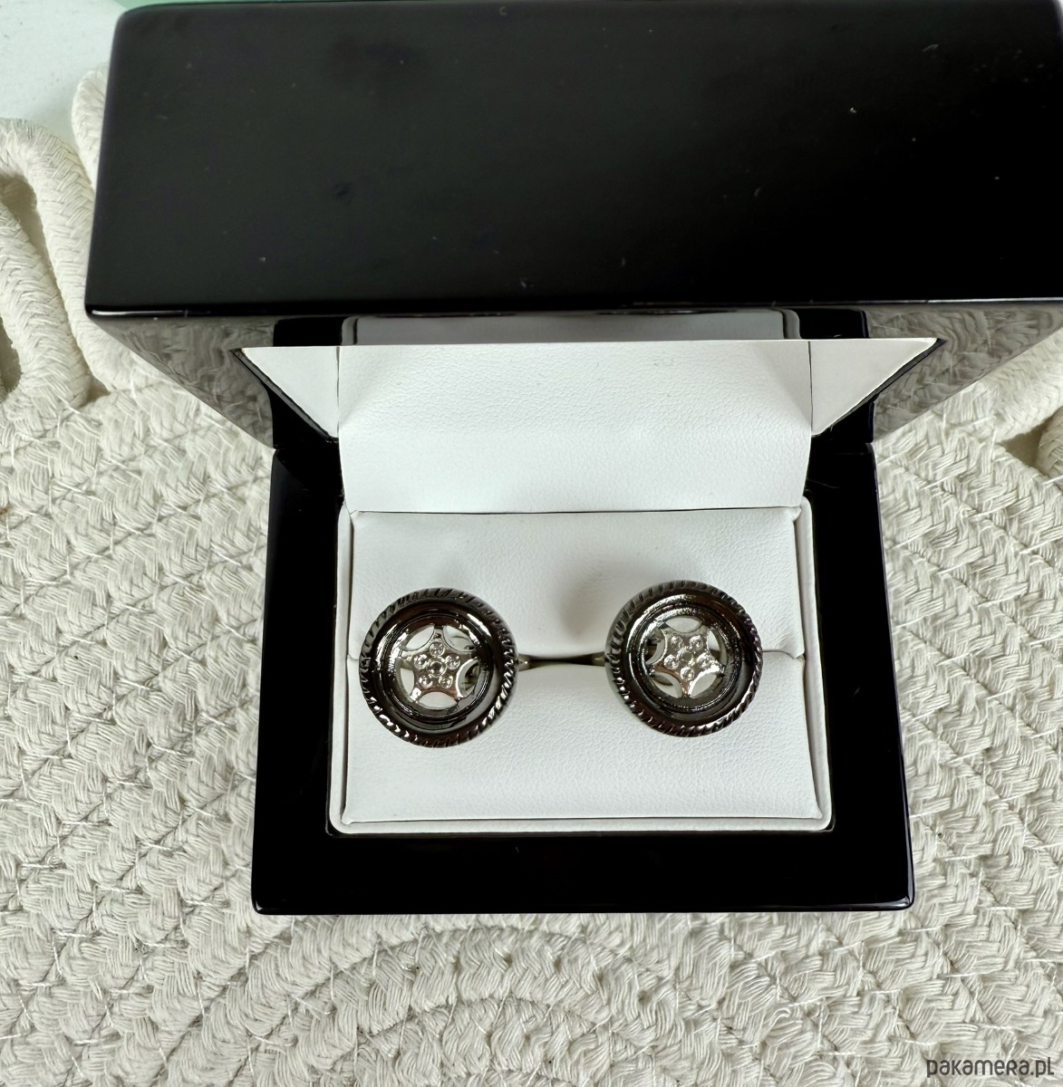 Spinki zapakowane w drewniane pudełko wykończone na wysoki połysk