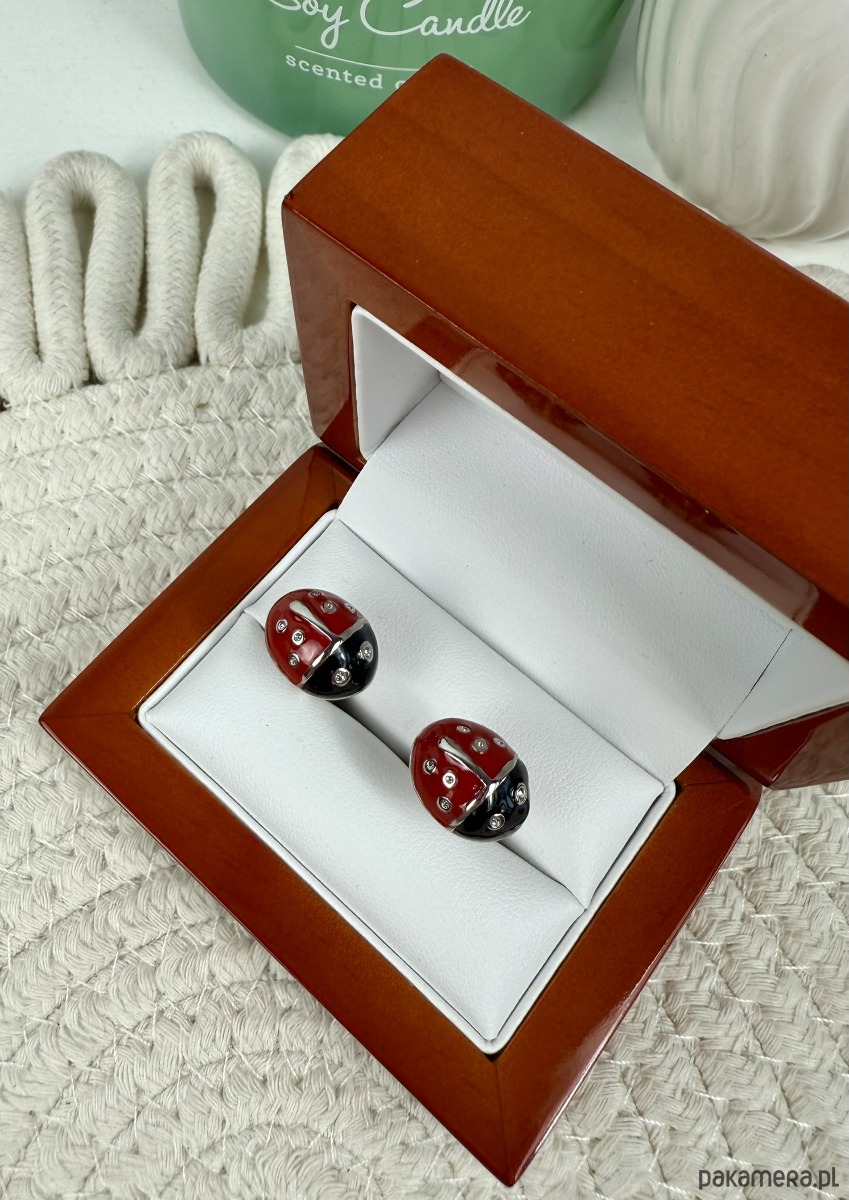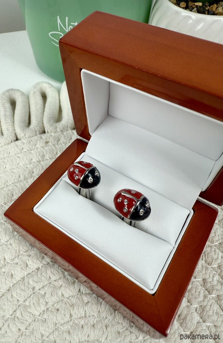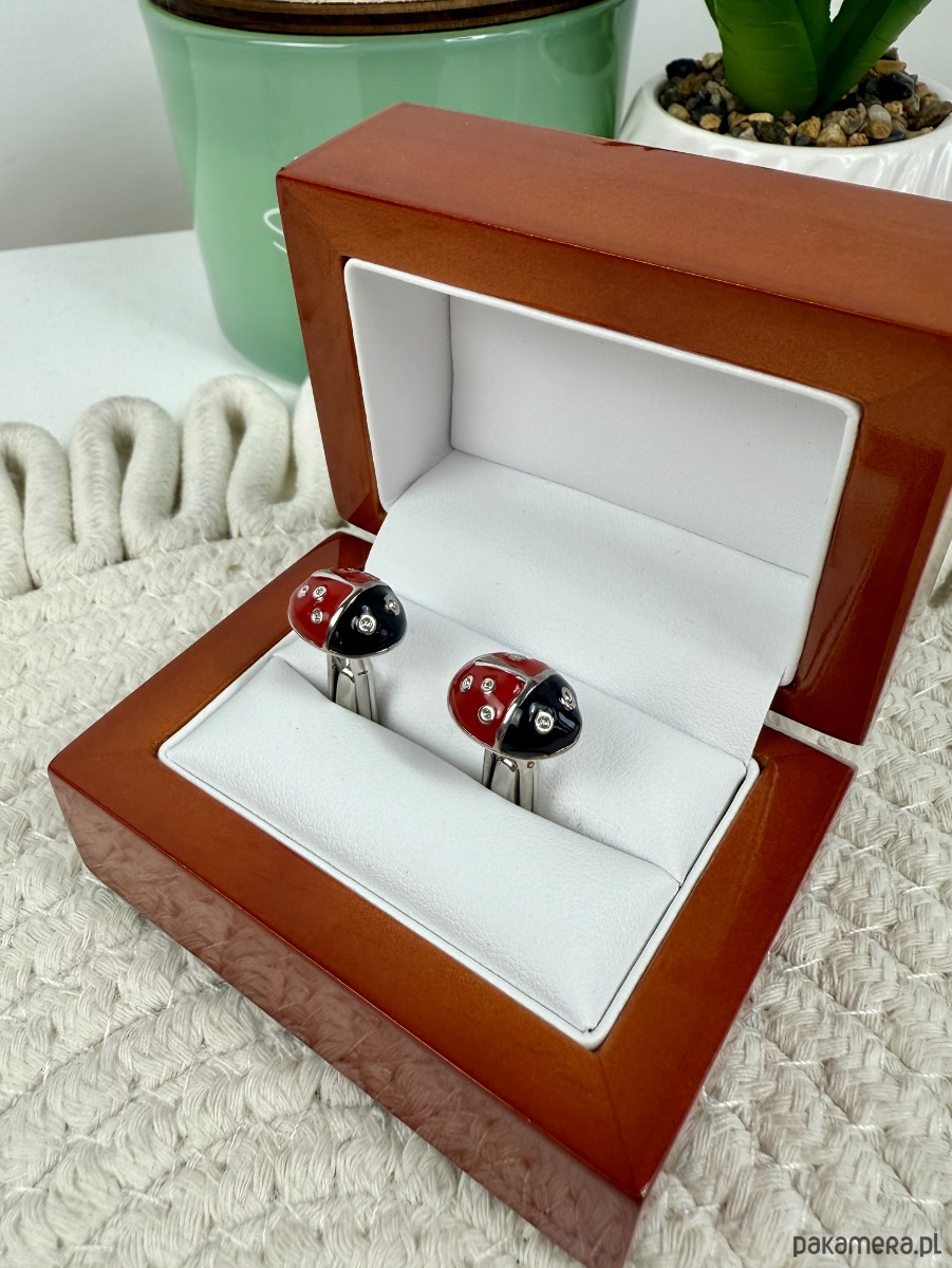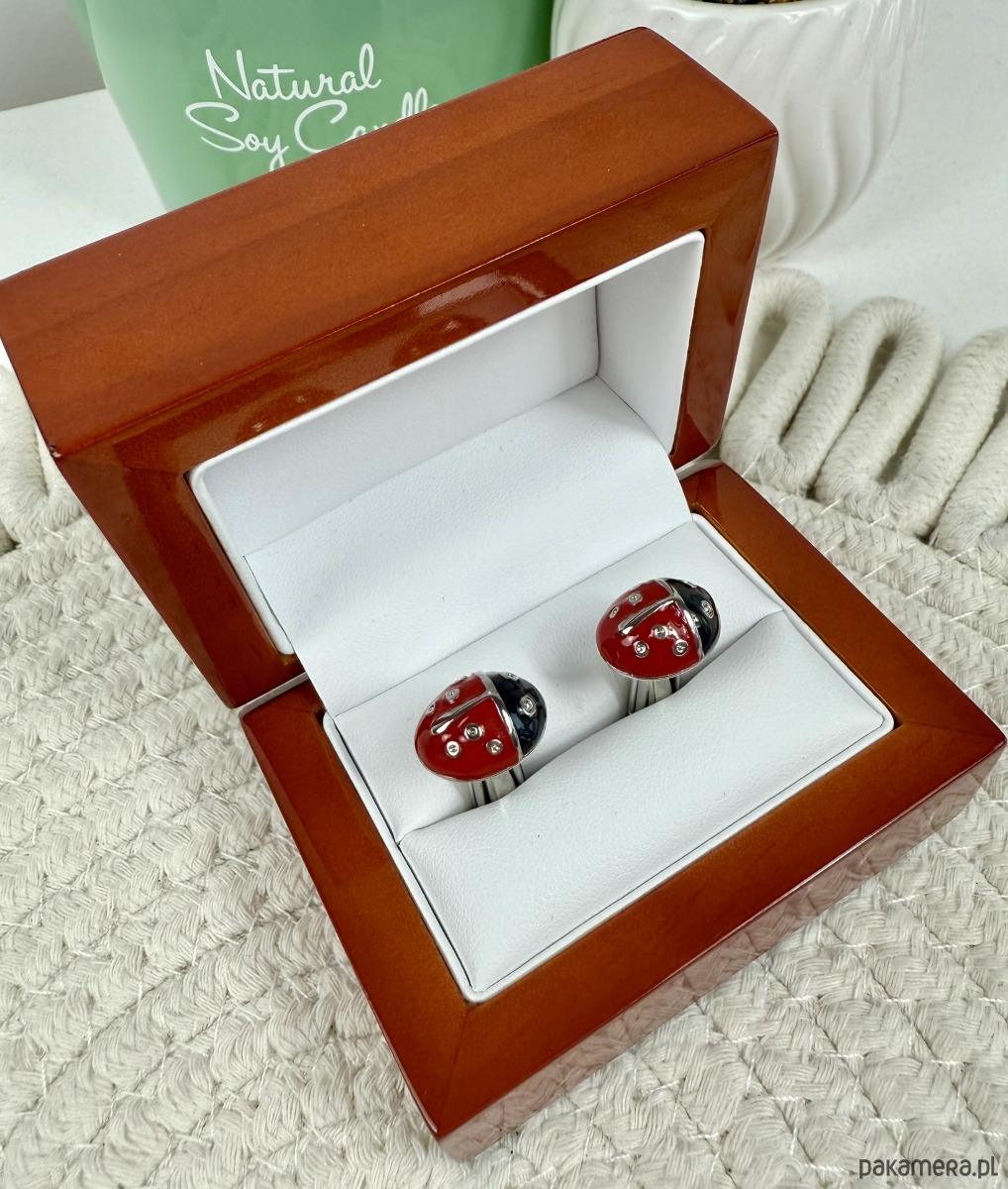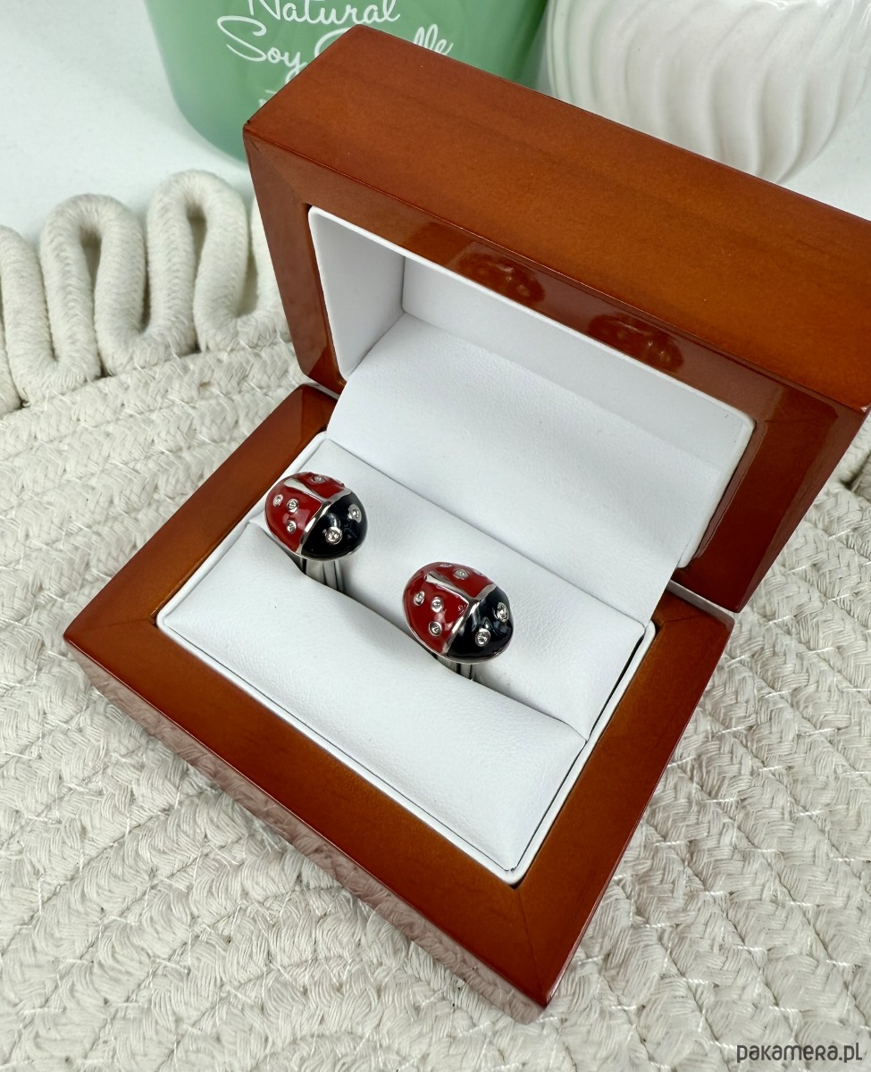 Spinki zapakowane w drewniane pudełko wykończone na wysoki połysk
