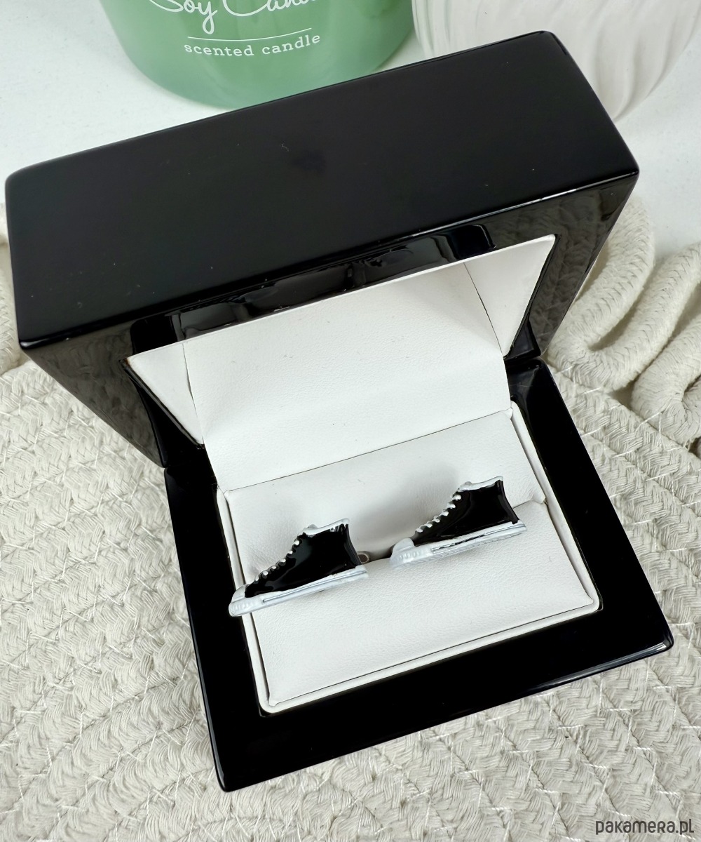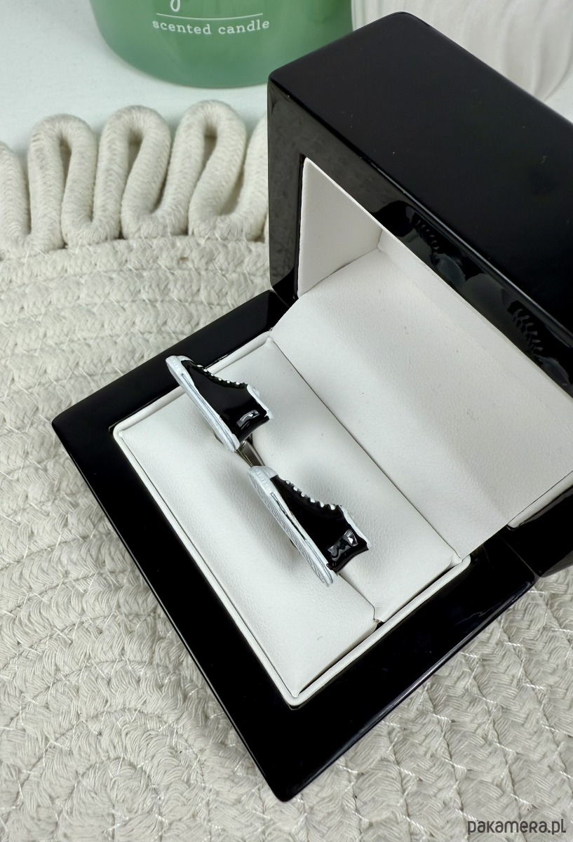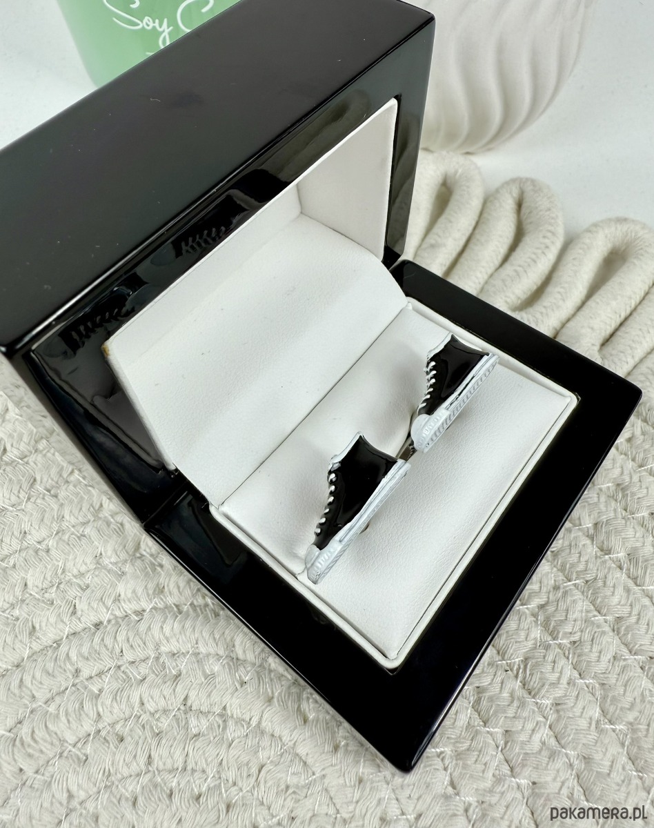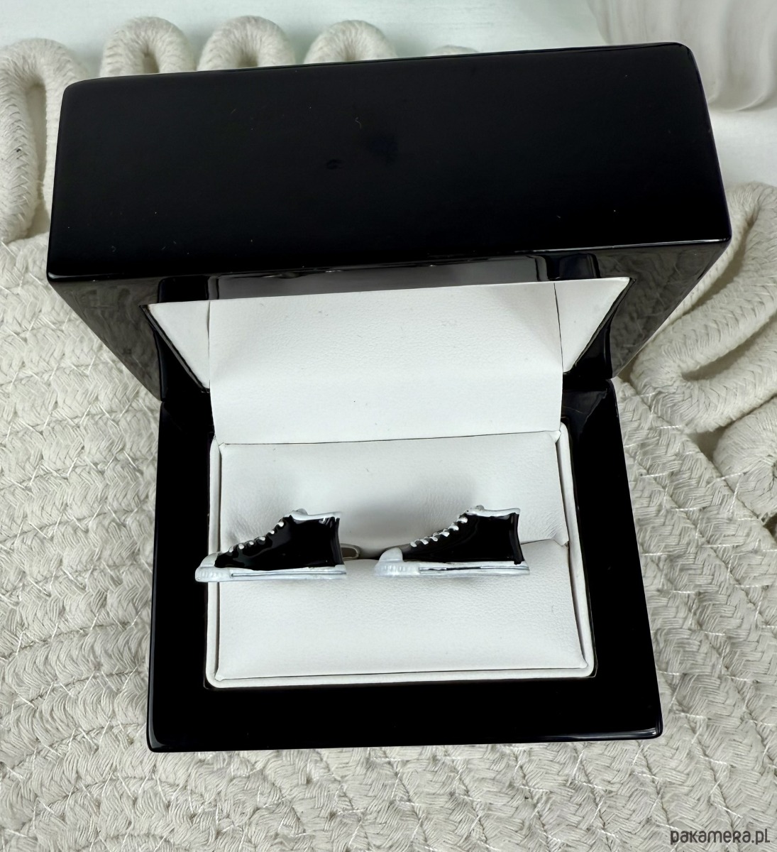 Spinki zapakowane w drewniane pudełko wykończone na wysoki połysk