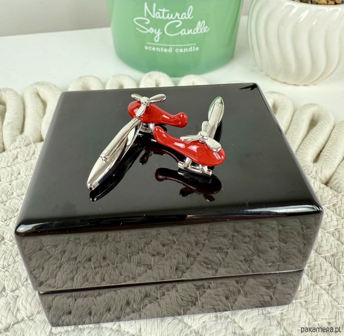 Spinki zapakowane w drewniane pudełko wykończone na wysoki połysk