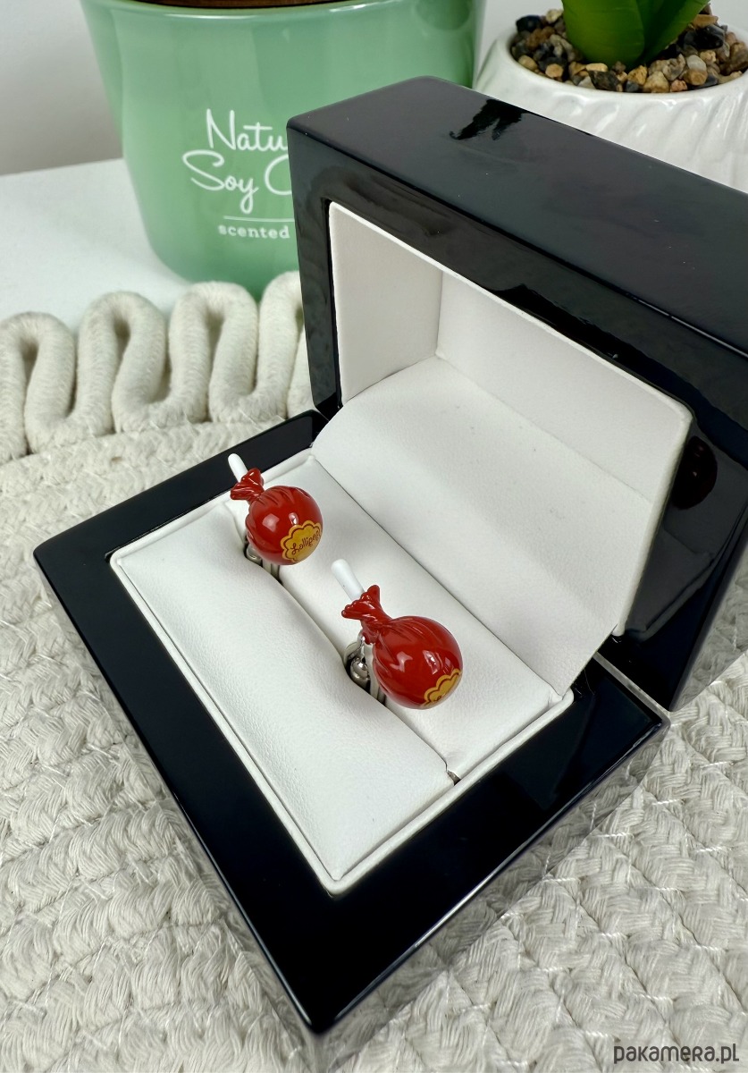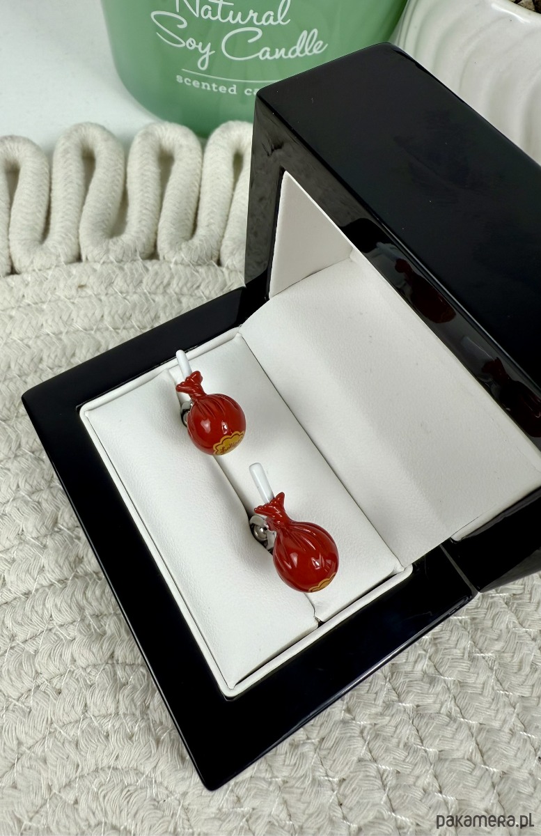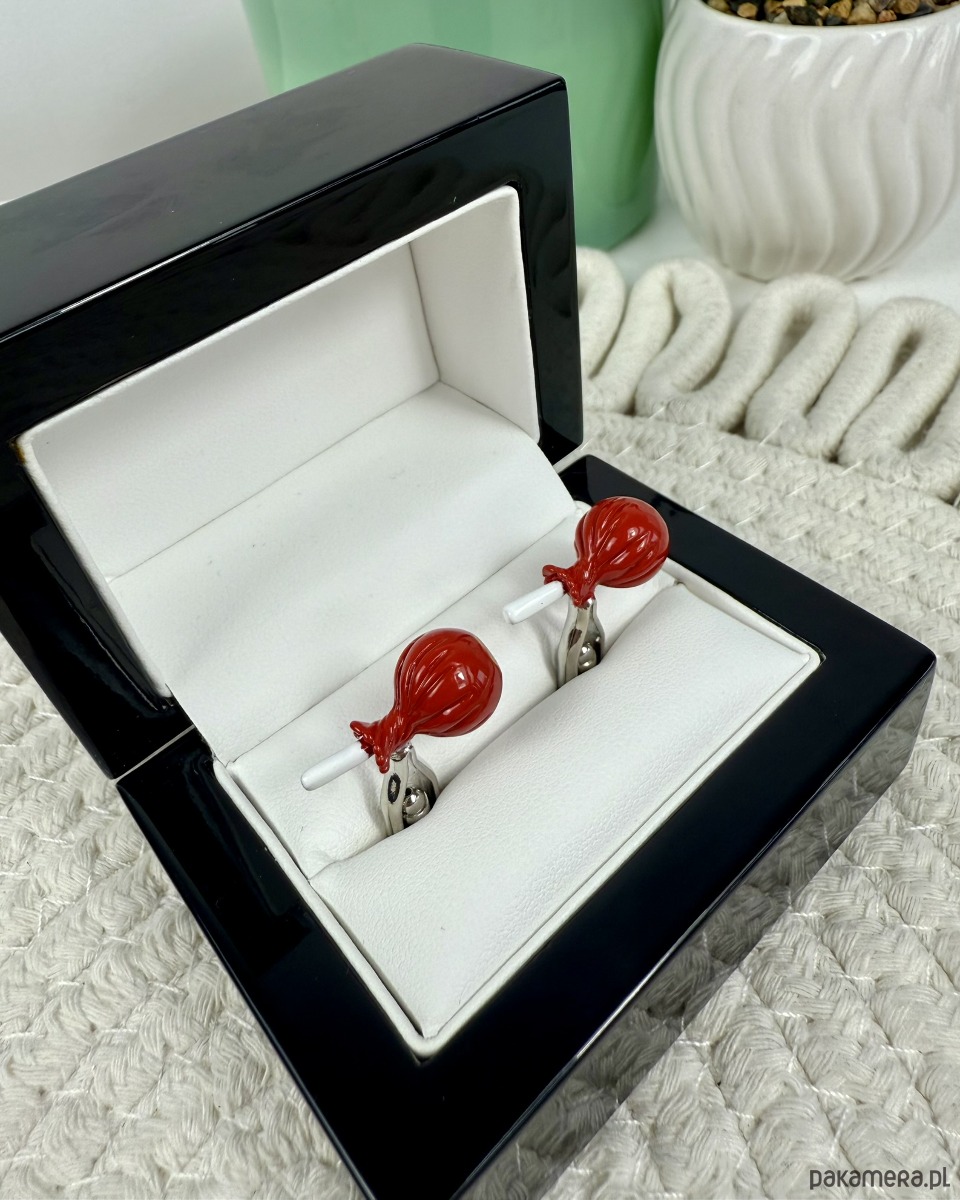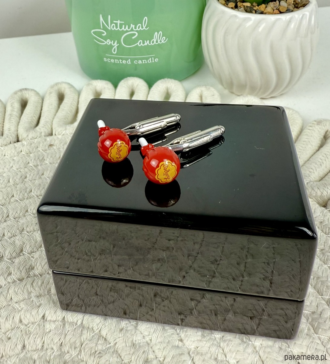 Spinki zapakowane w drewniane pudełko wykończone na wysoki połysk