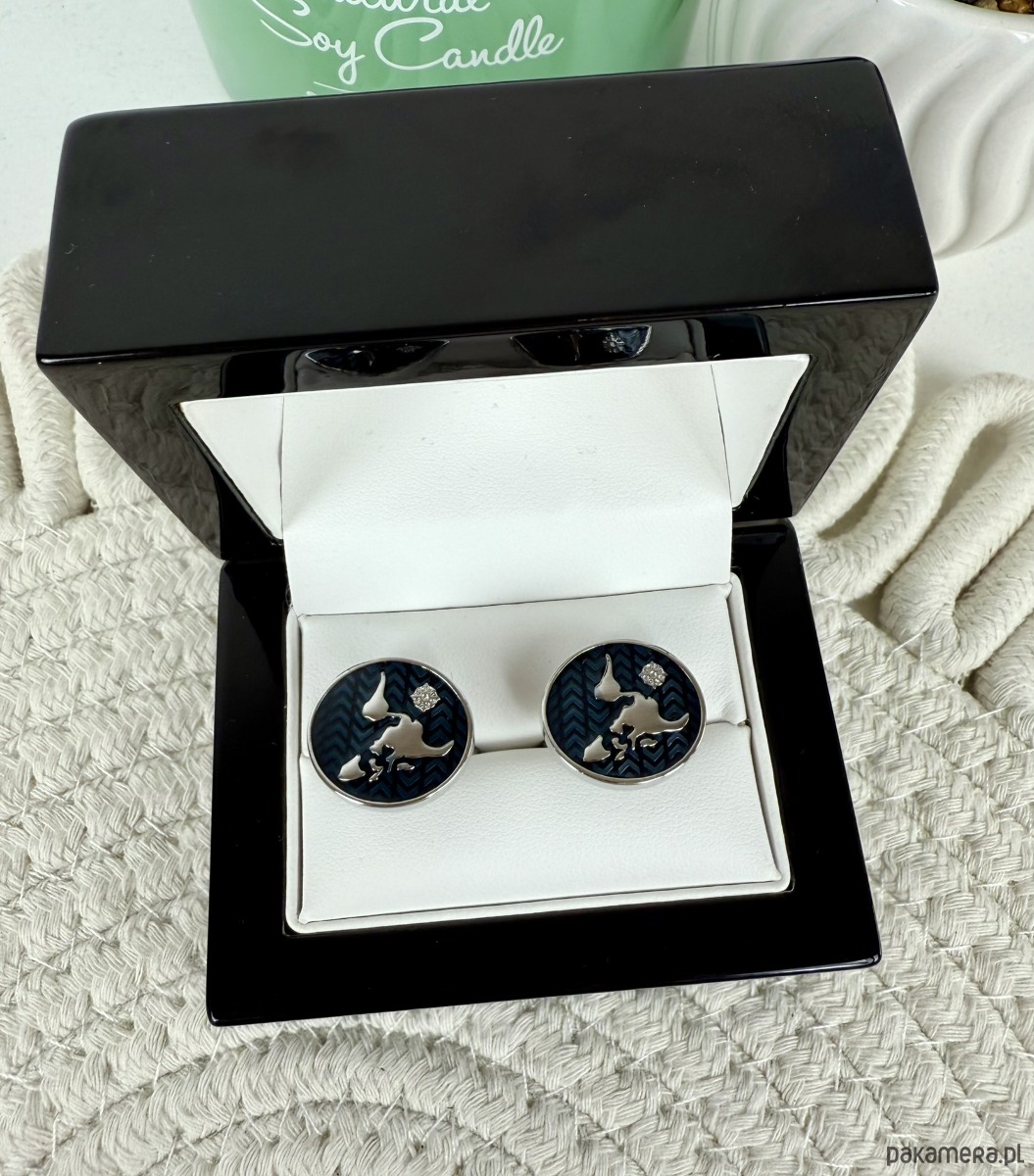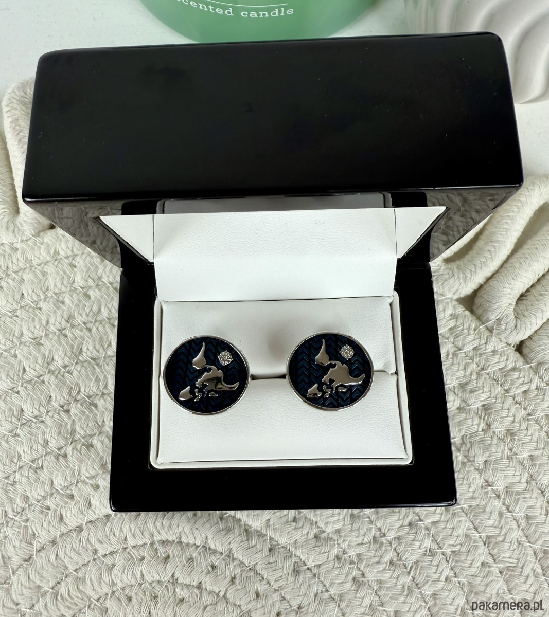 Spinki zapakowane w drewniane pudełko wykończone na wysoki połysk