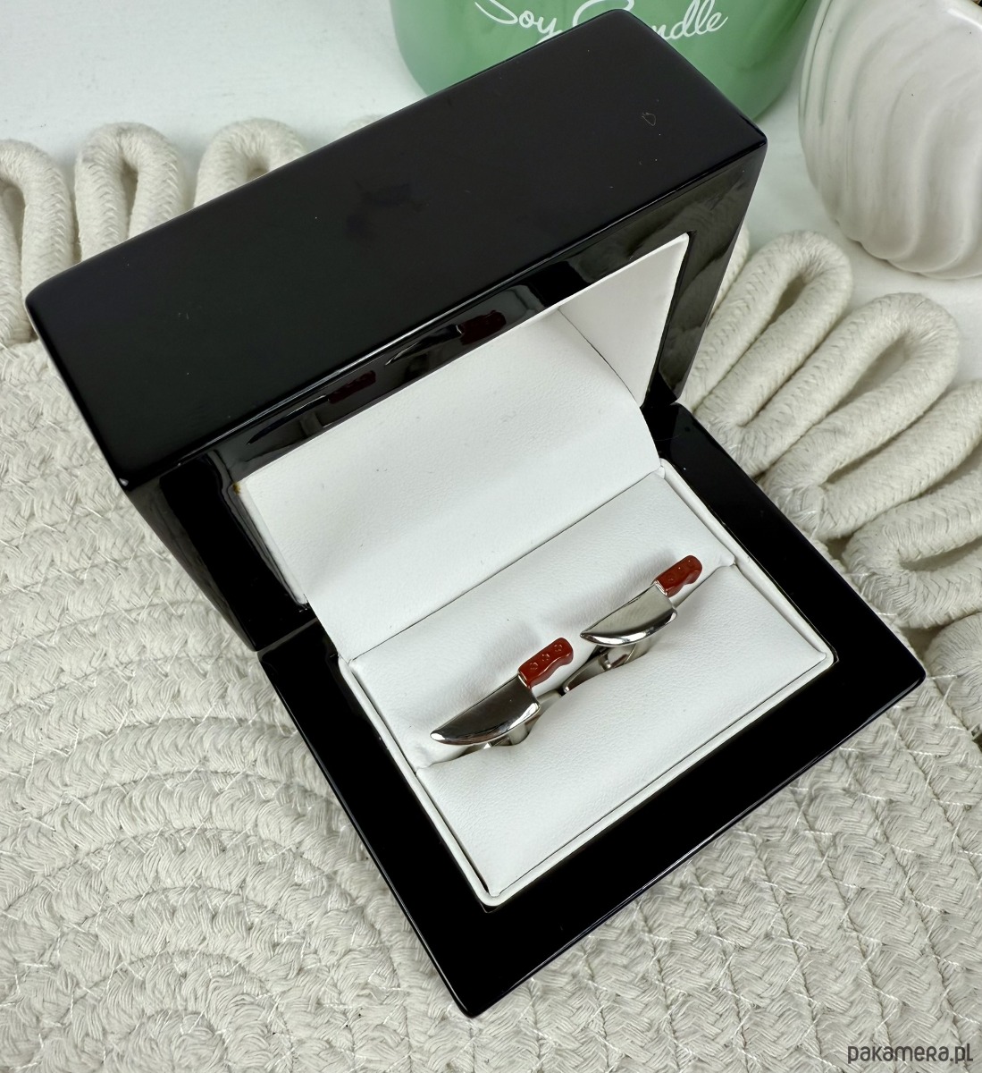 Spinki zapakowane w drewniane pudełko wykończone na wysoki połysk