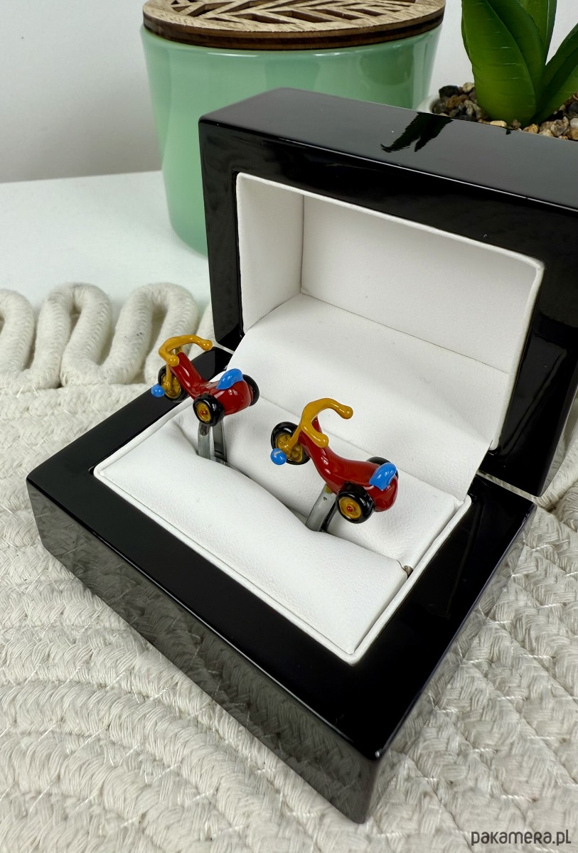 Spinki zapakowane w drewniane pudełko wykończone na wysoki połysk