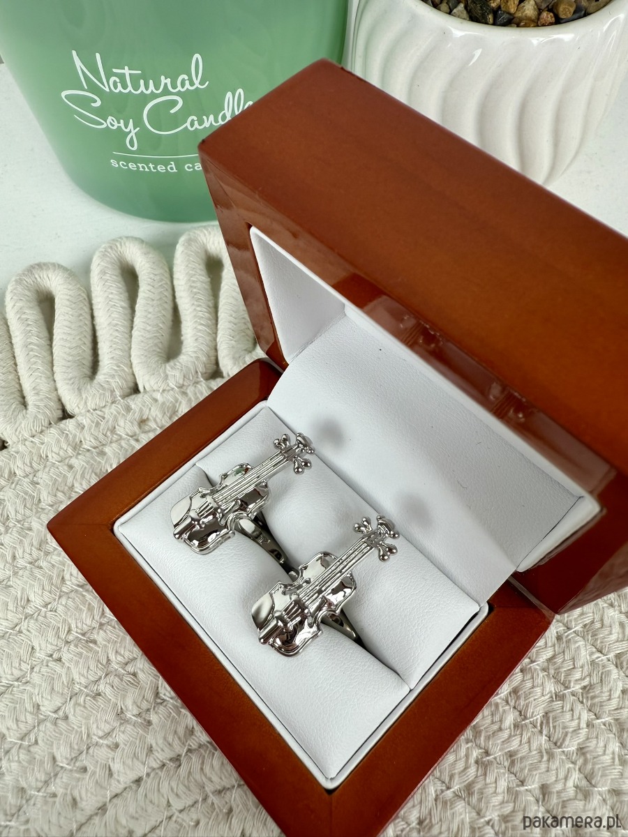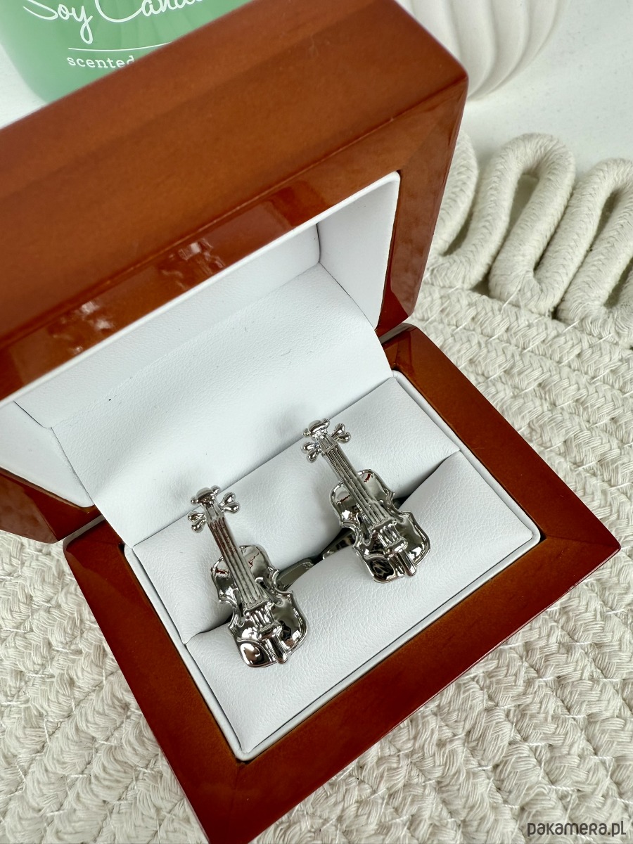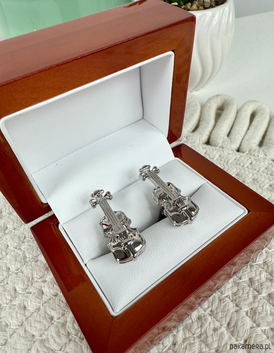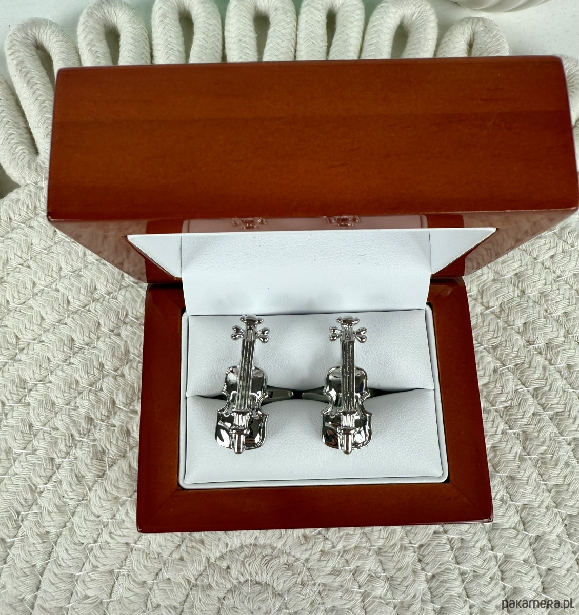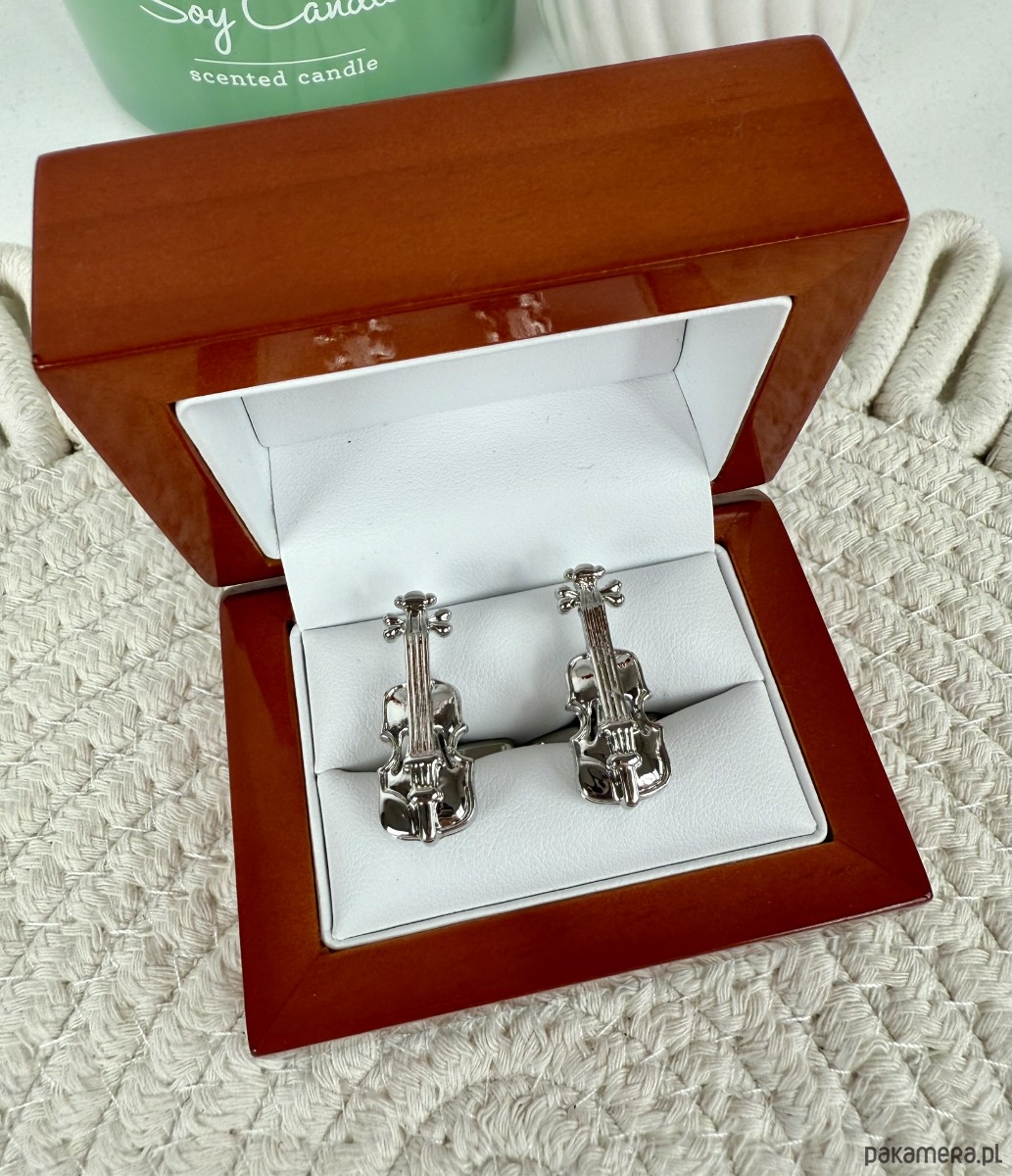 SPINKI DO MANKIETÓW koszuli mankietu skrzypce srebrne