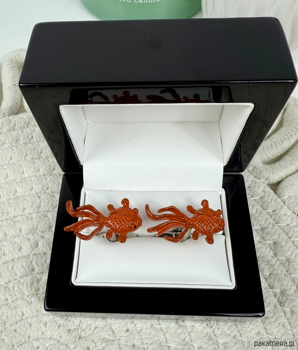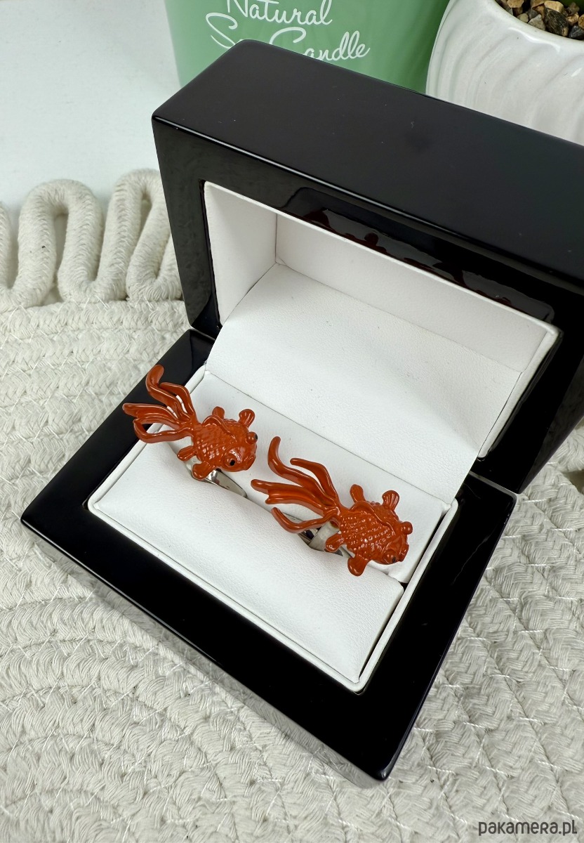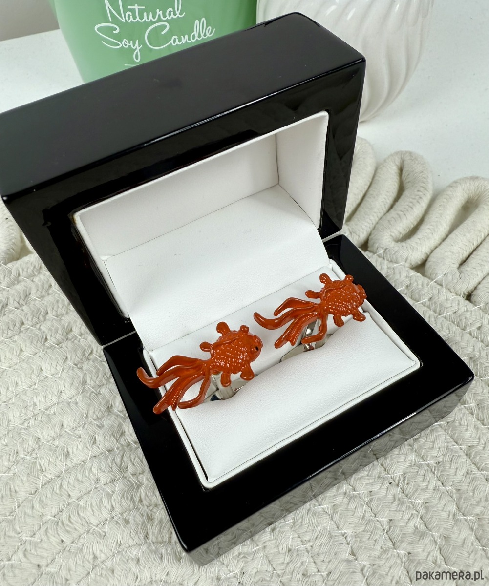 Spinki zapakowane w drewniane pudełko wykończone na wysoki połysk