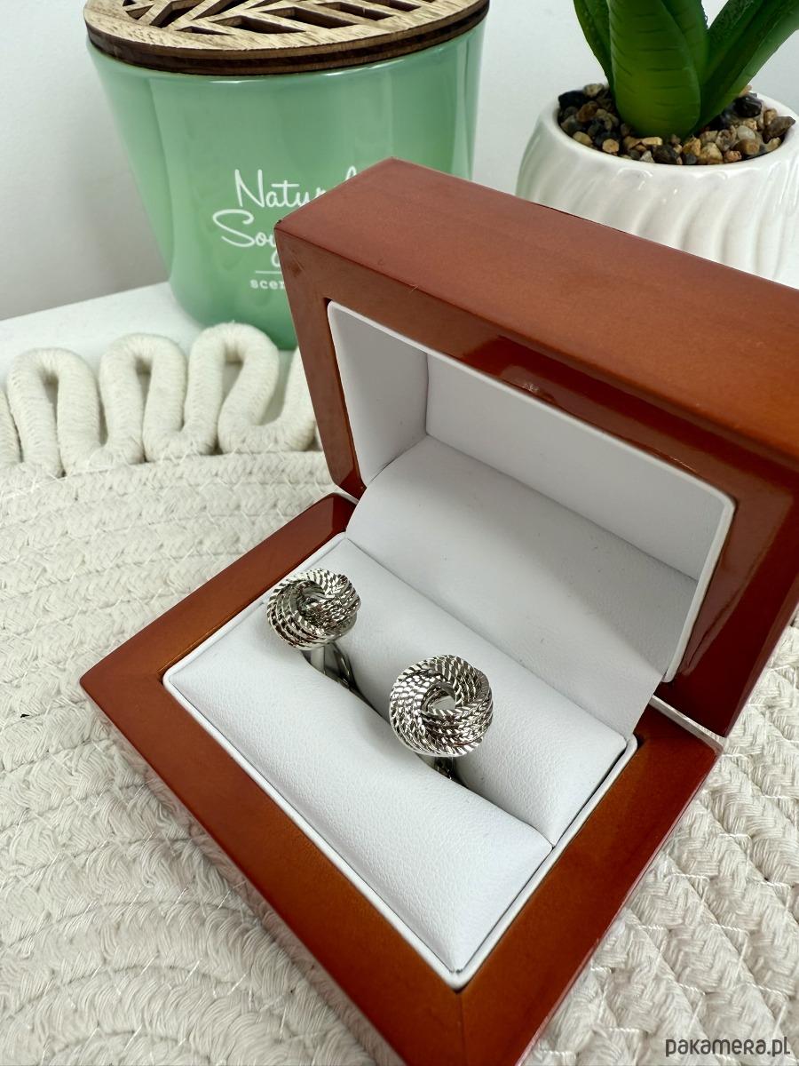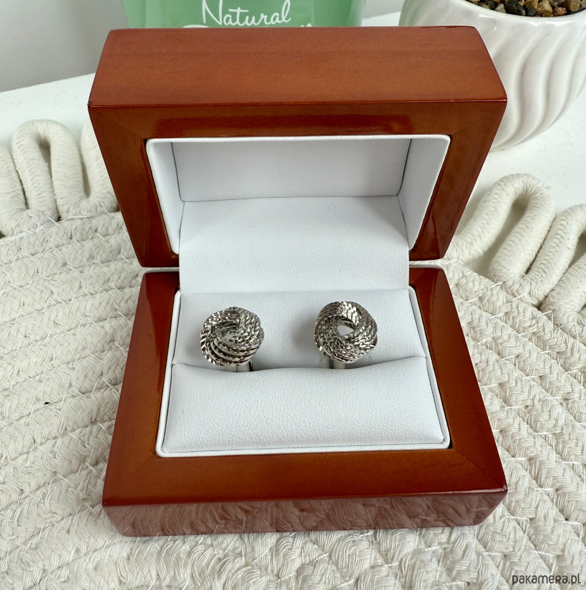 Spinki zapakowane w drewniane pudełko wykończone na wysoki połysk