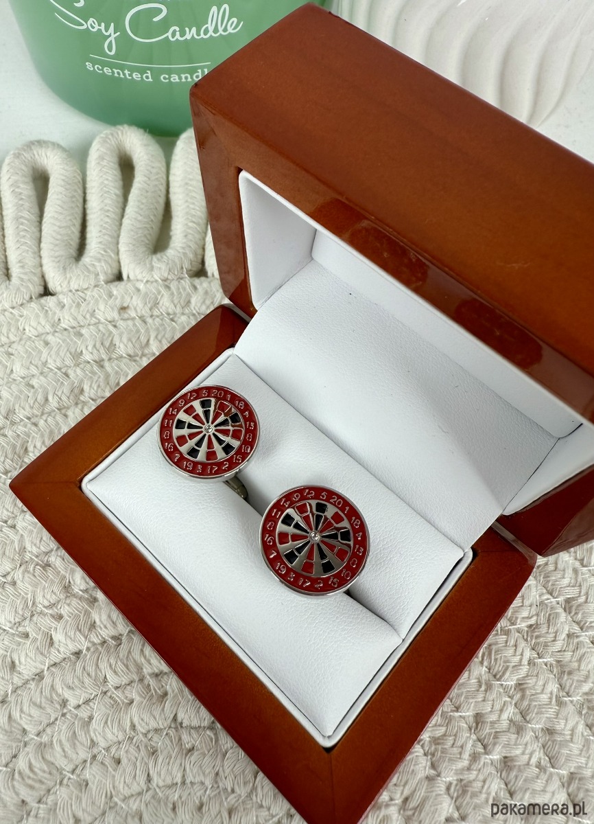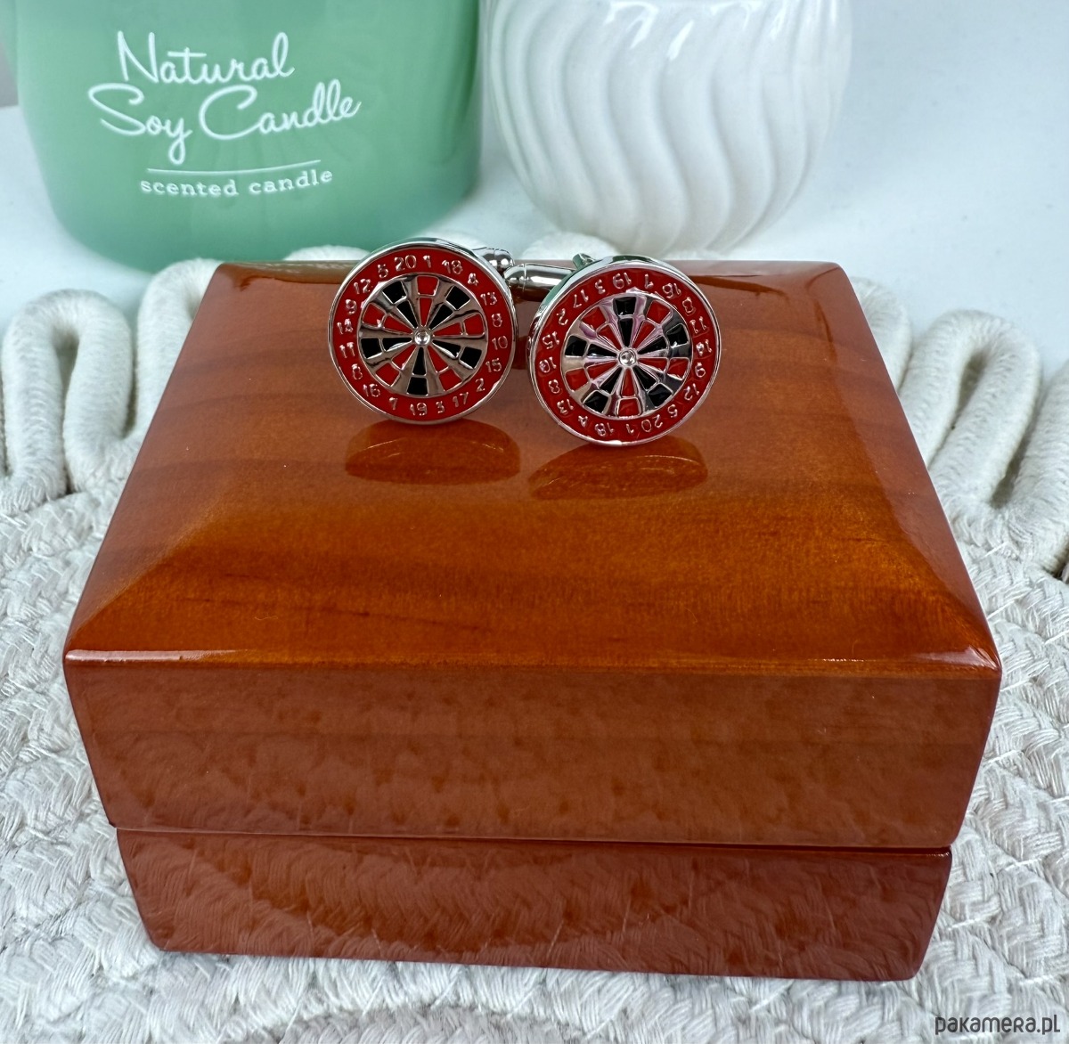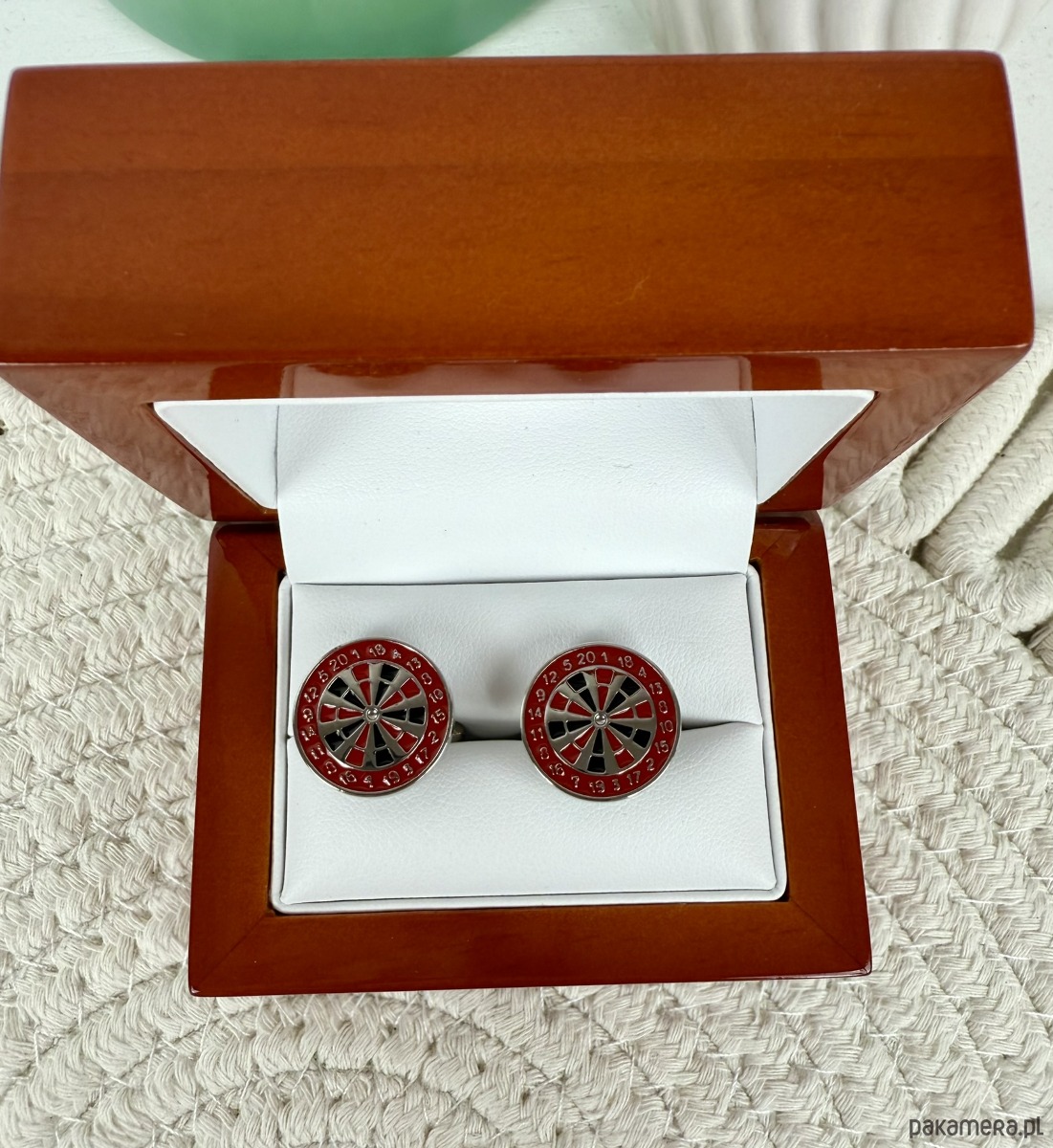 Spinki zapakowane w drewniane pudełko wykończone na wysoki połysk