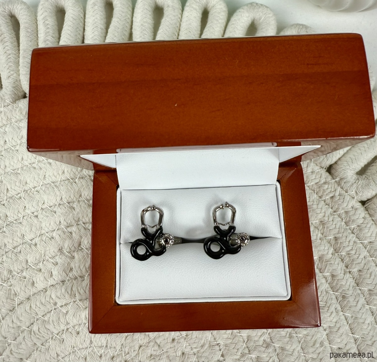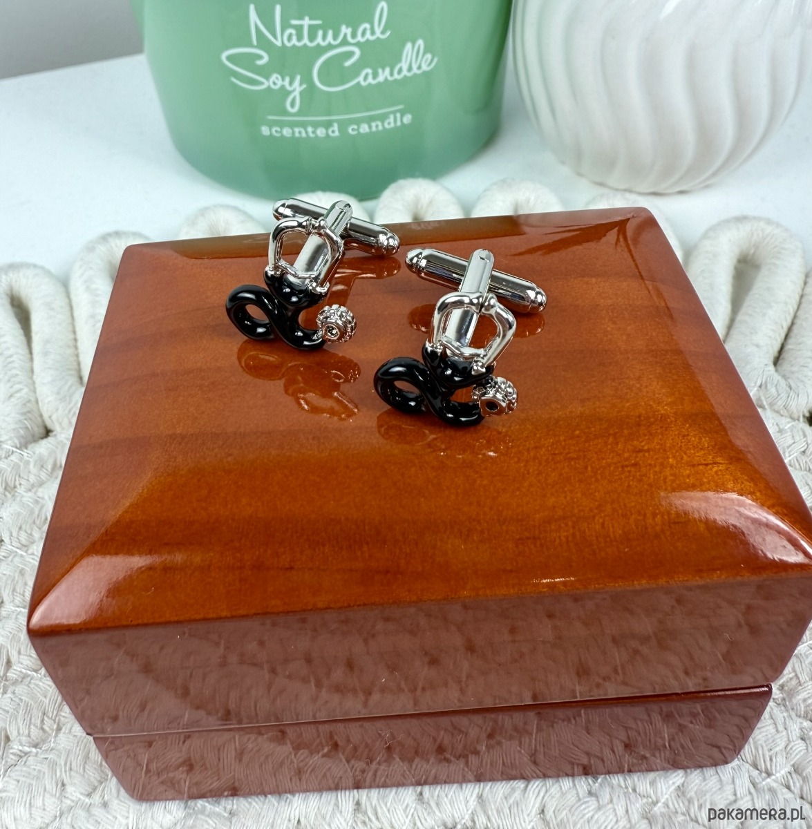 Spinki zapakowane w drewniane pudełko wykończone na wysoki połysk