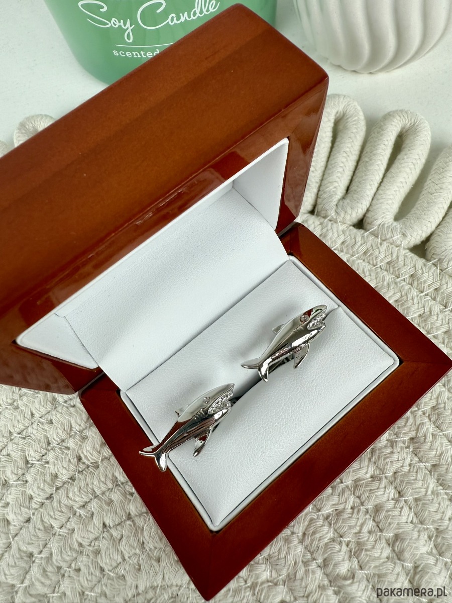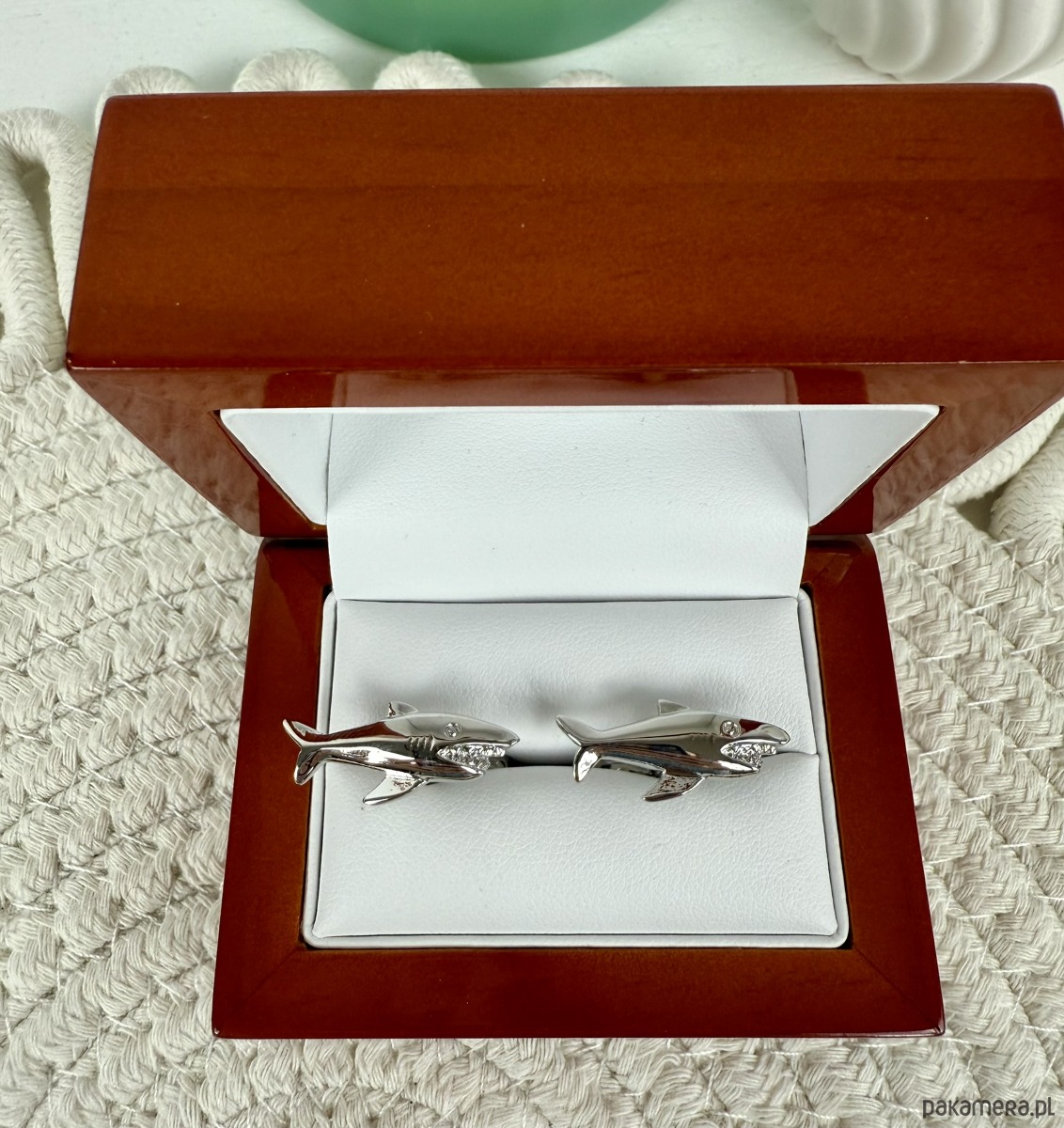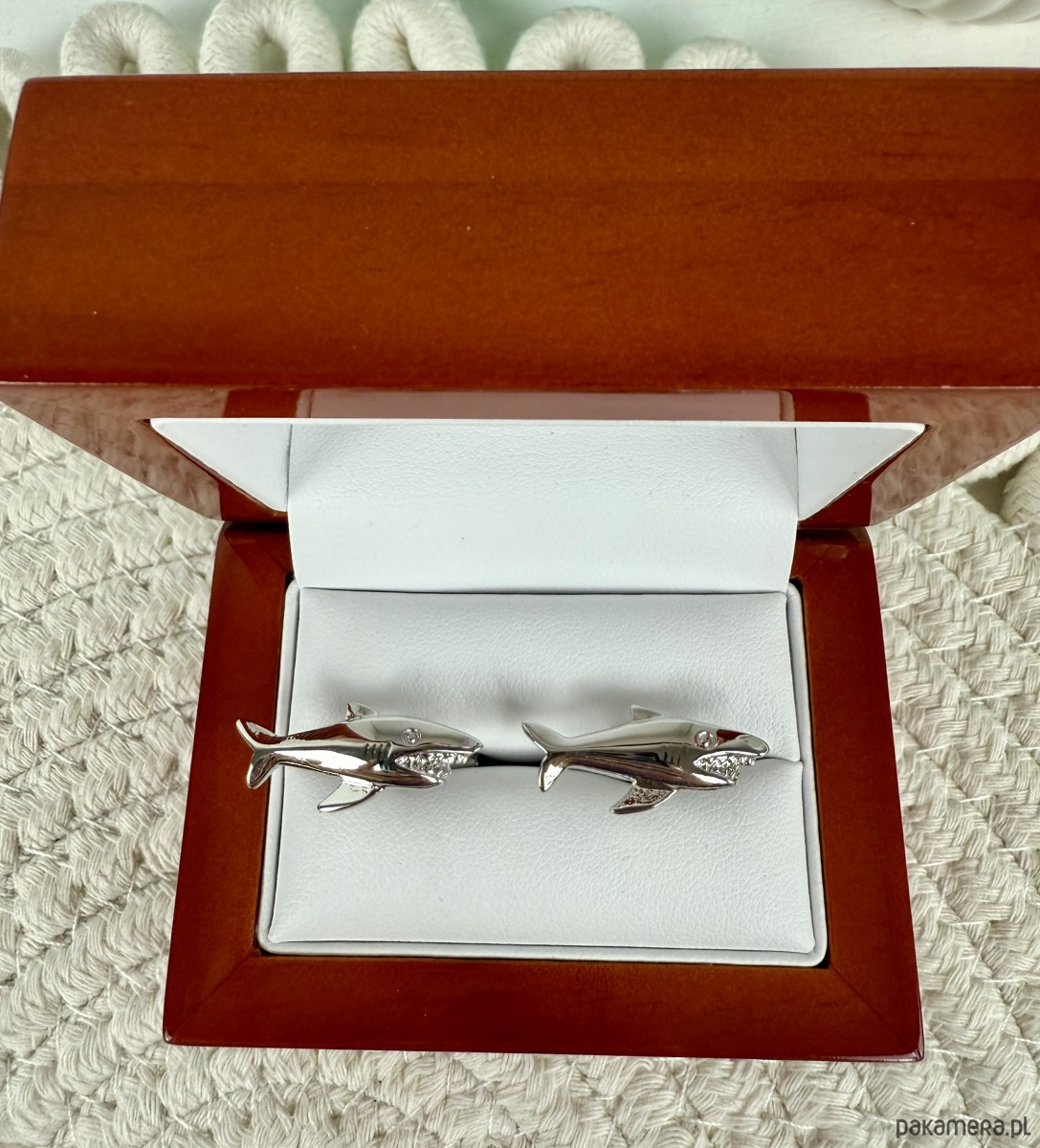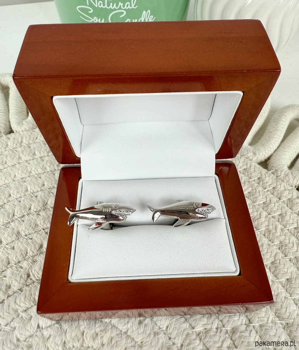 SPINKI DO MANKIETÓW koszuli rekin rekiny srebrne