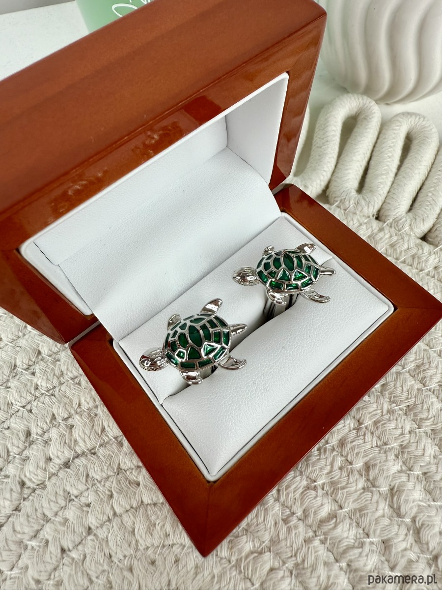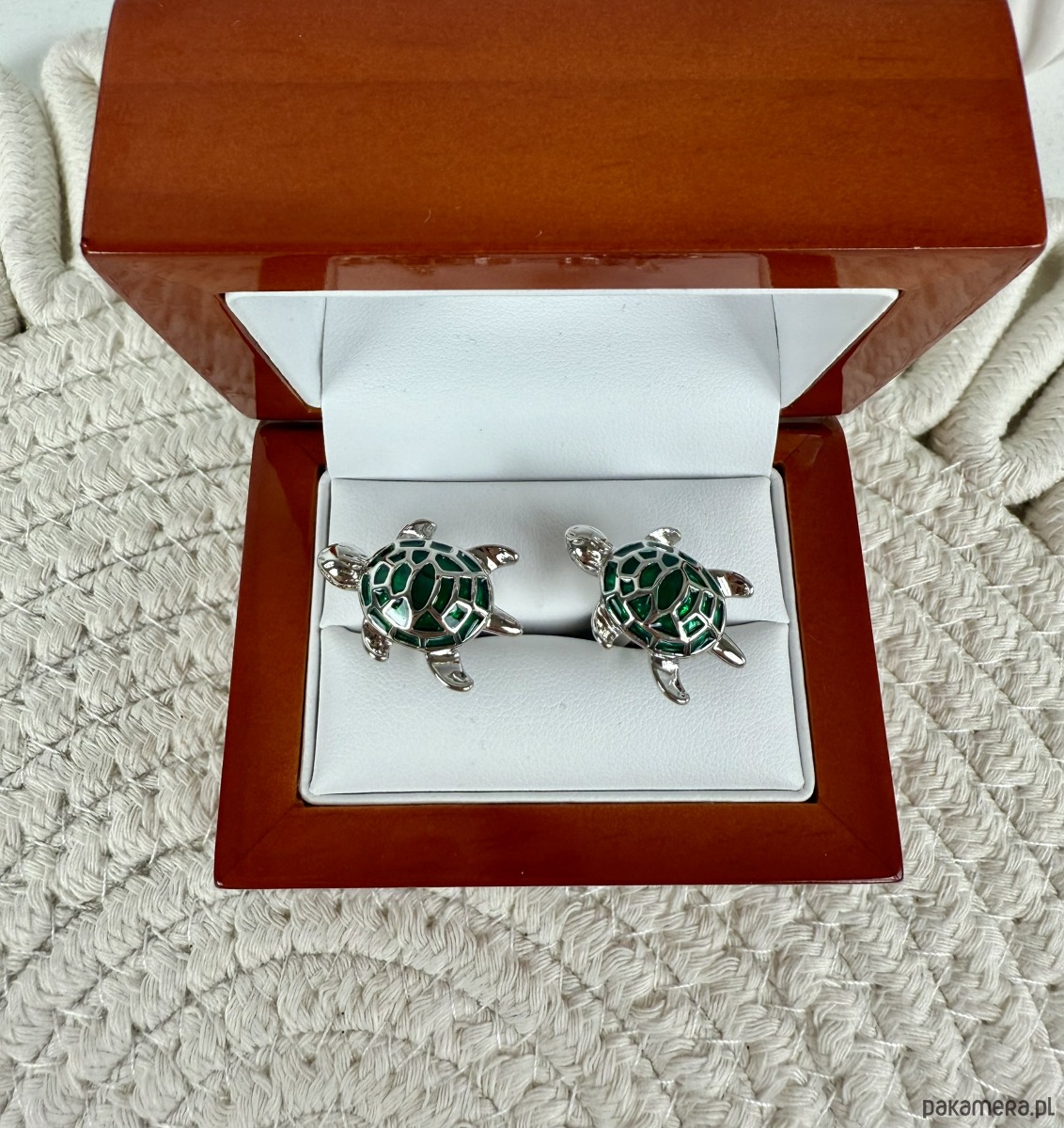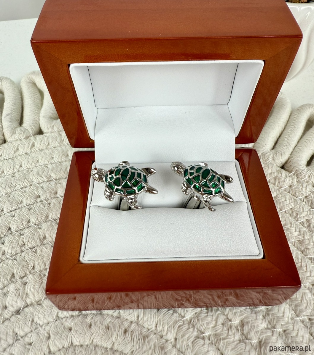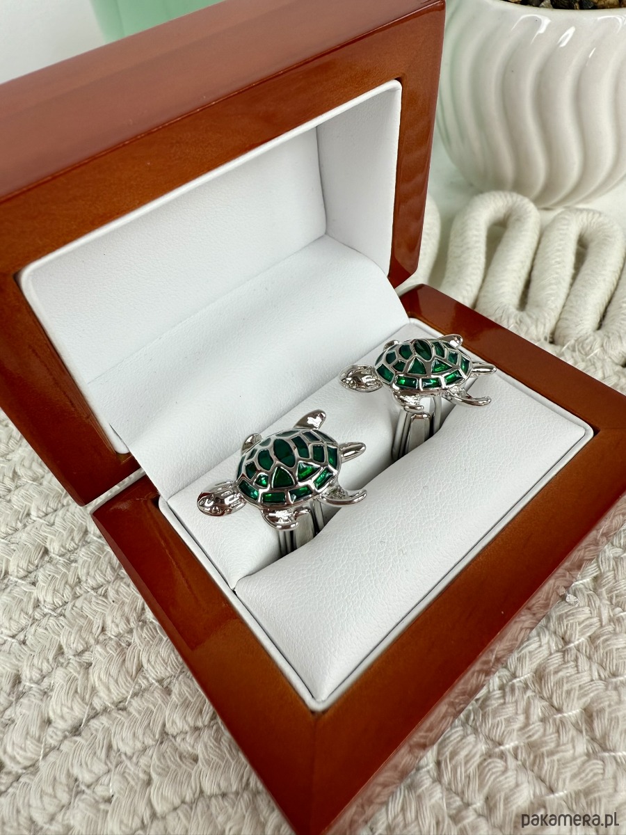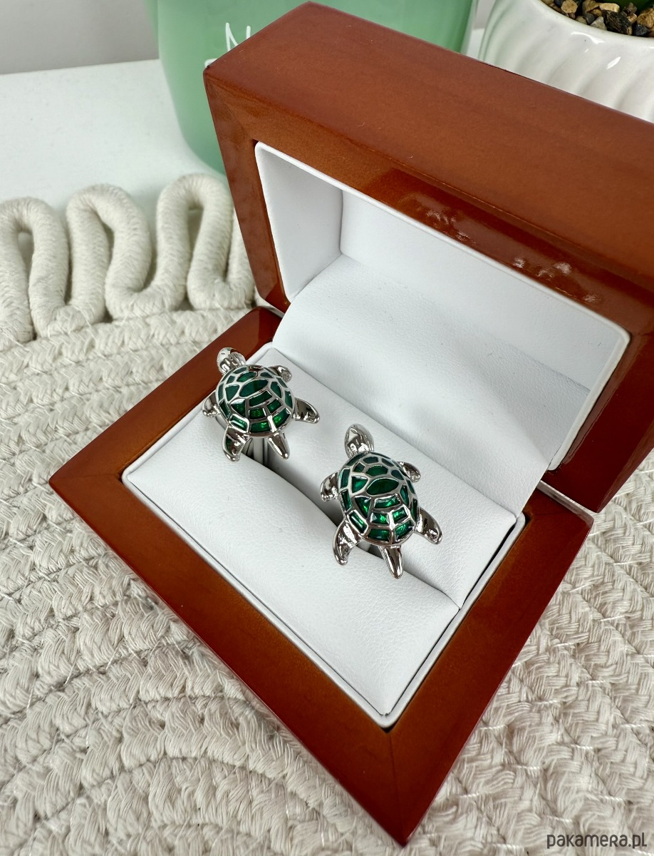 SPINKI DO MANKIETÓW koszuli żółw żółwie zielone