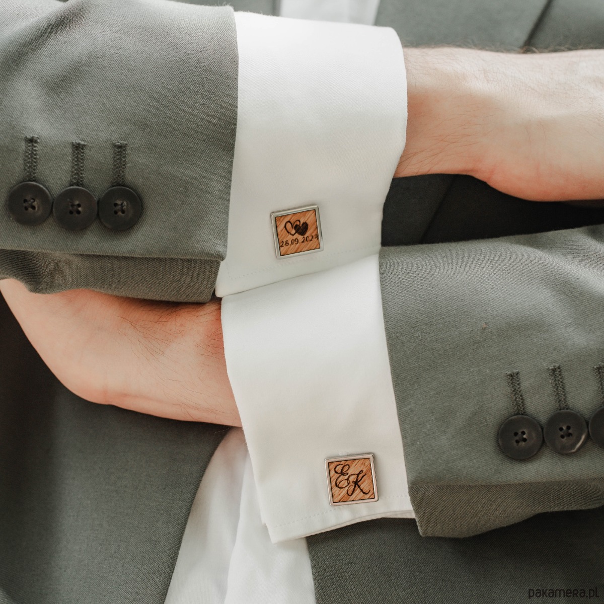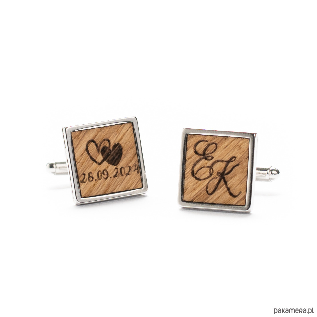 Spinki do mankietów kwadratowe dąb z inicjałami i datą