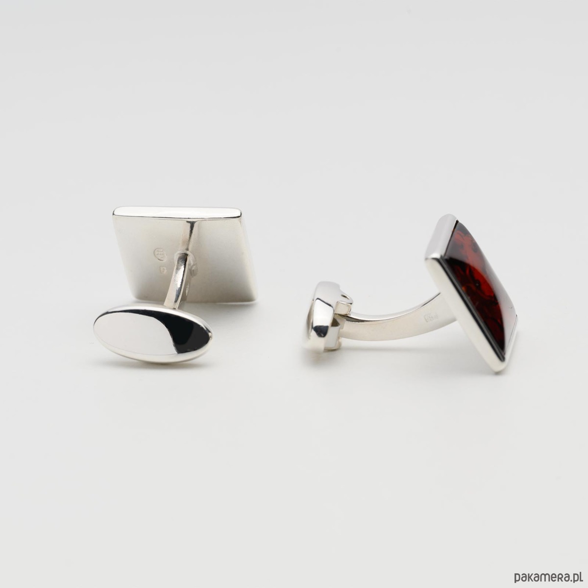 SPINKI DO MANKIETÓW KWADRATOWE Z BURSZTYNEM - SREBRO 925