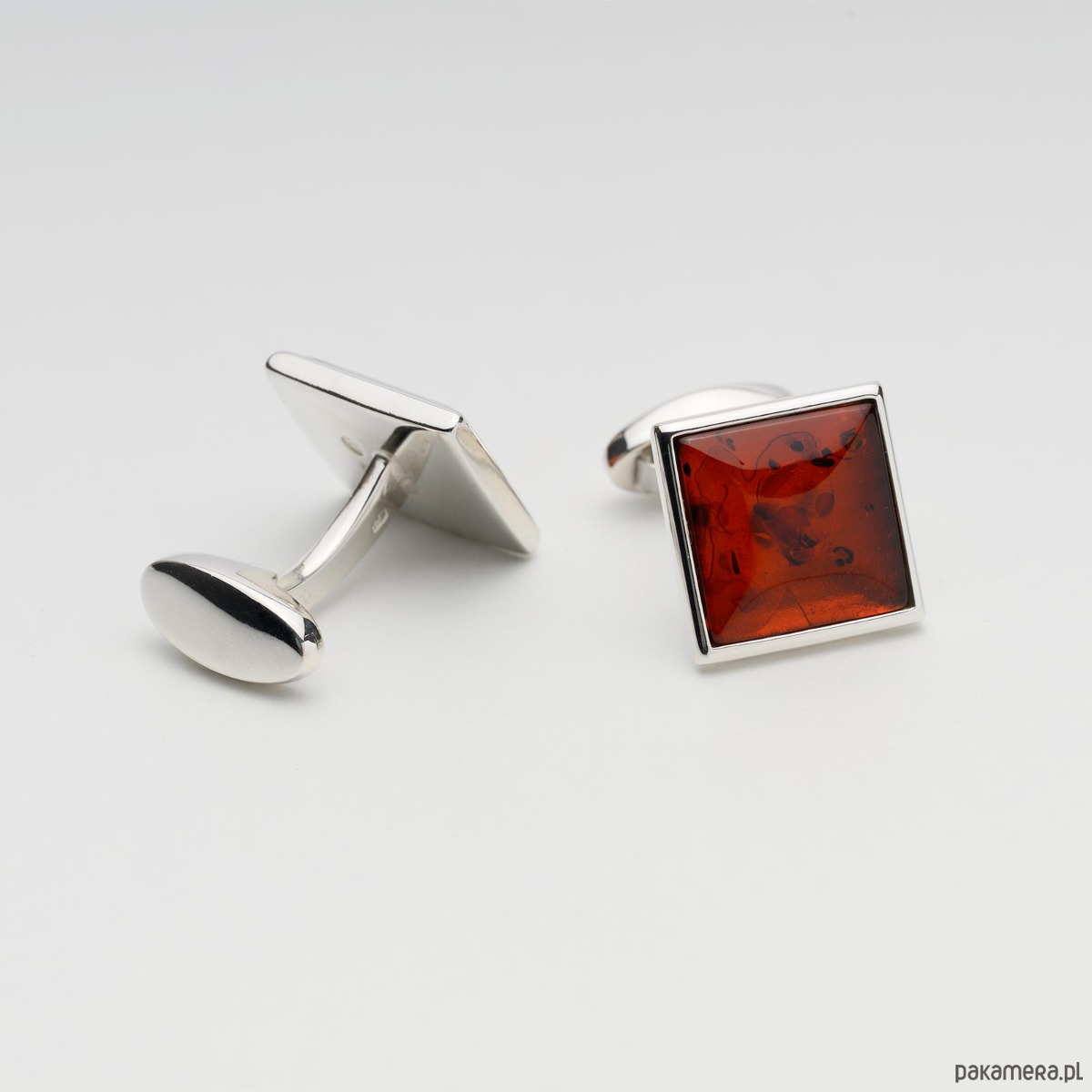 Spinki do mankietów kwadratowe z bursztynem - srebro 925