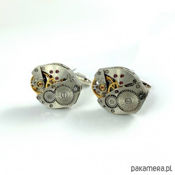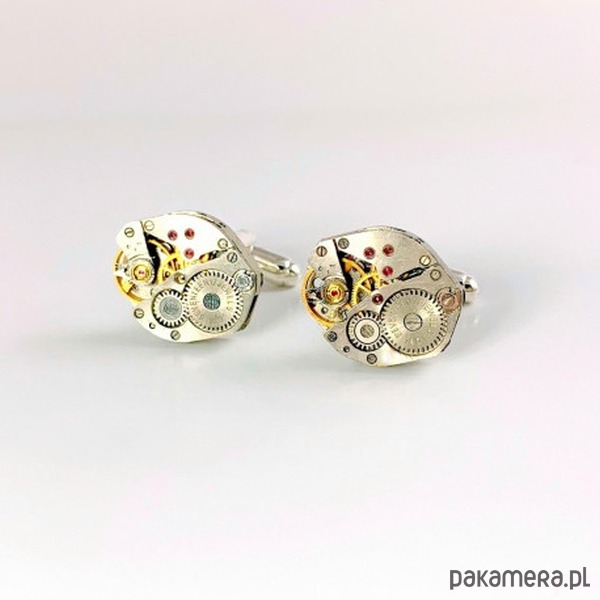 Spinki wykonane ręcznie ze starych mechanizmów zegarków. Są oczyszczone, a mechanizm odpowiednio zabezpieczony przez zgubieniem czy stratą elementów zegarka.