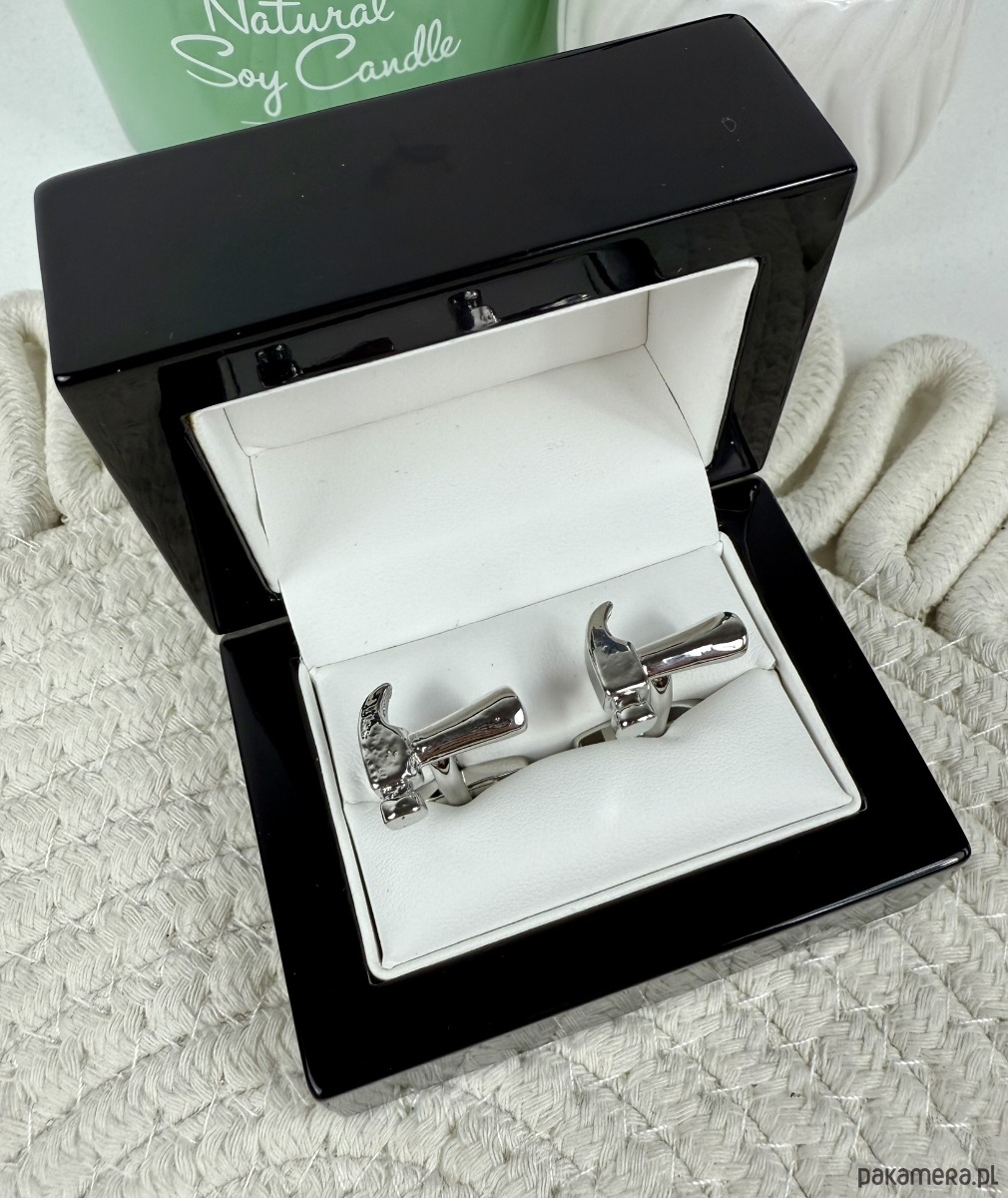 Prezentowany zestaw spinek do mankietów to najwyższej jakości produkt wykonany ze stali szlachetnej. Dzięki nietuzinkowemu designowi spinki są wspaniałym dodatkiem do każdej stylizacji.