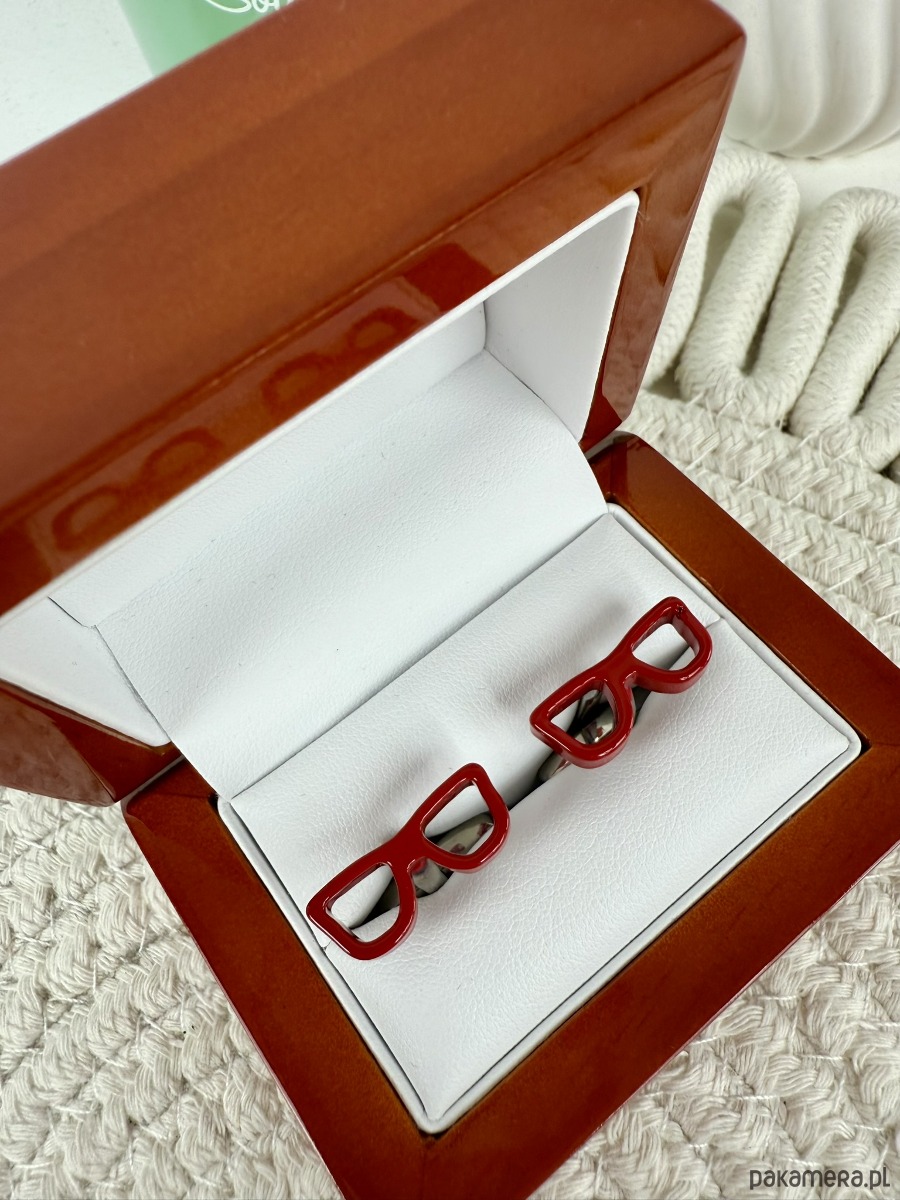 SPINKI DO MANKIETÓW okulary czerwone oprawki